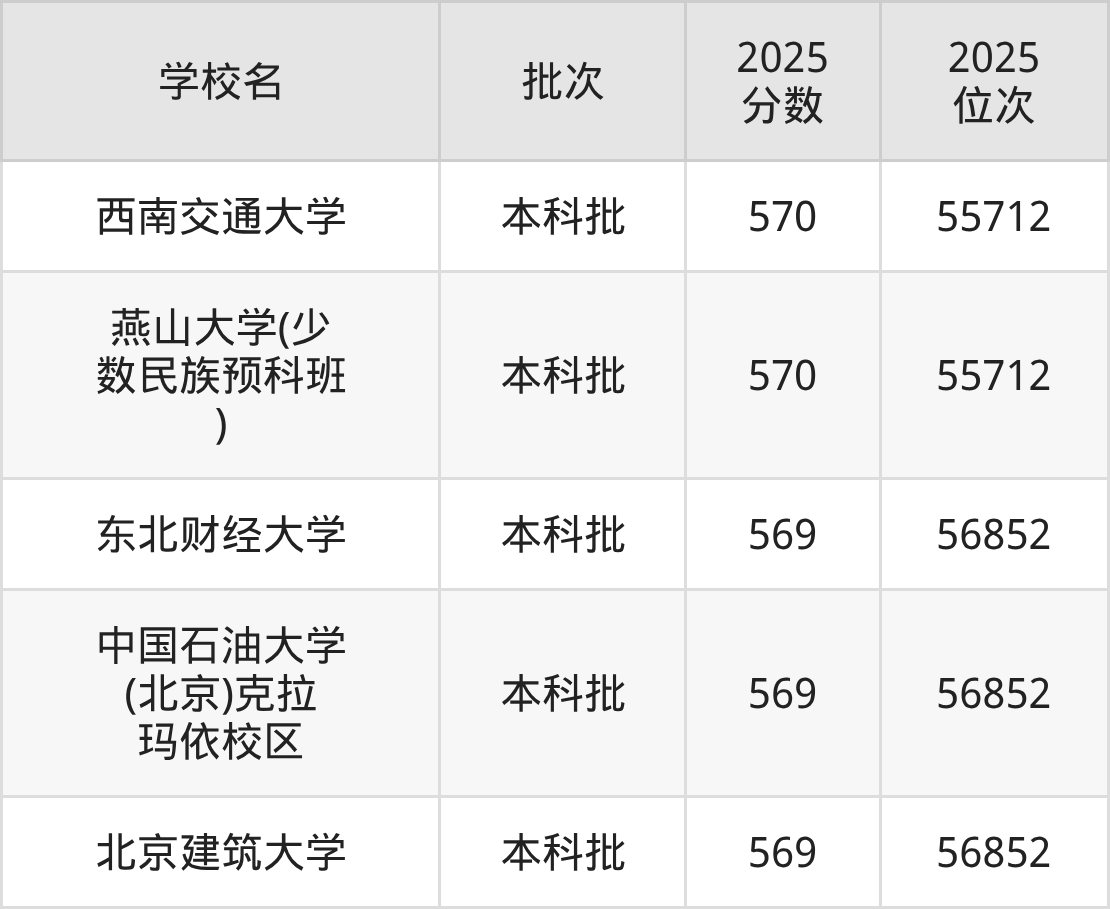 这些都是2026年高考物理类55713名~56852名考生可以报考的大学,更多学校名单如下表所示: