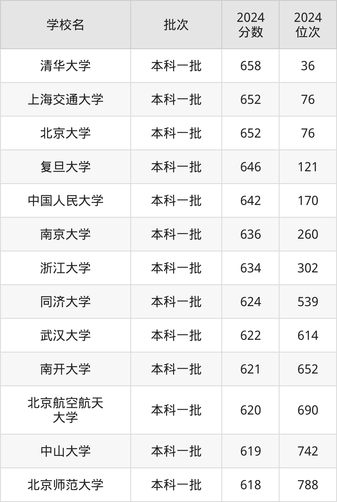 由于高考录取分数线历年波动较大,因此本文以该分数对应的位次排名为大家整理能上的大学名单。