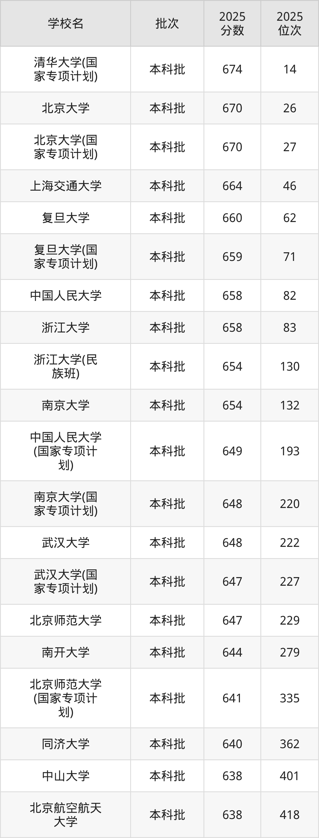 由于高考录取分数线历年波动较大,因此本文以该分数对应的位次排名为大家整理能上的大学名单。