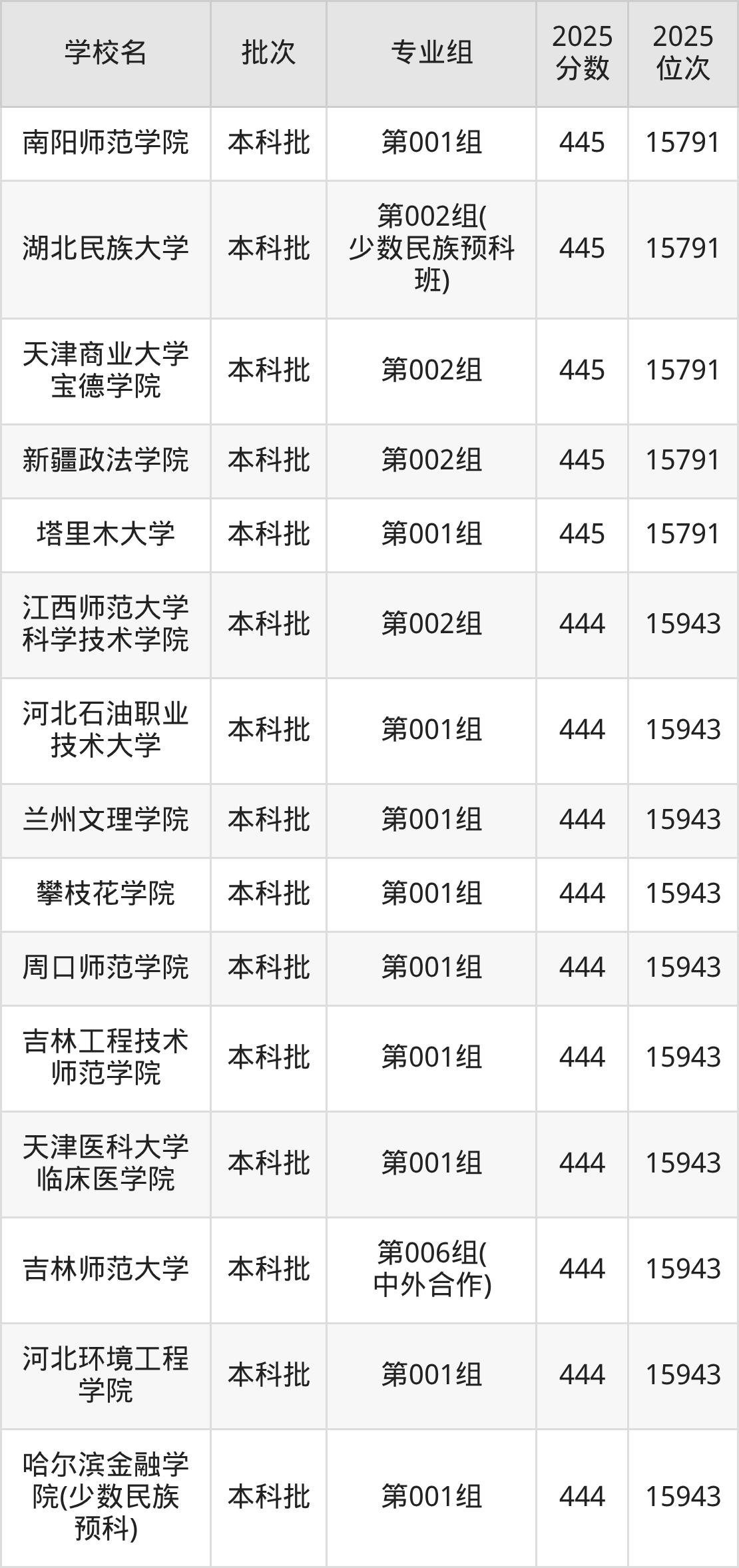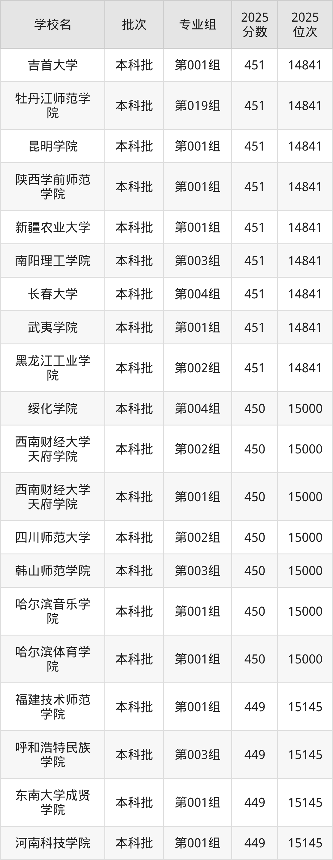 这些都是2026年高考历史类15300名~15465名考生可以报考的大学,更多学校名单如下表所示: