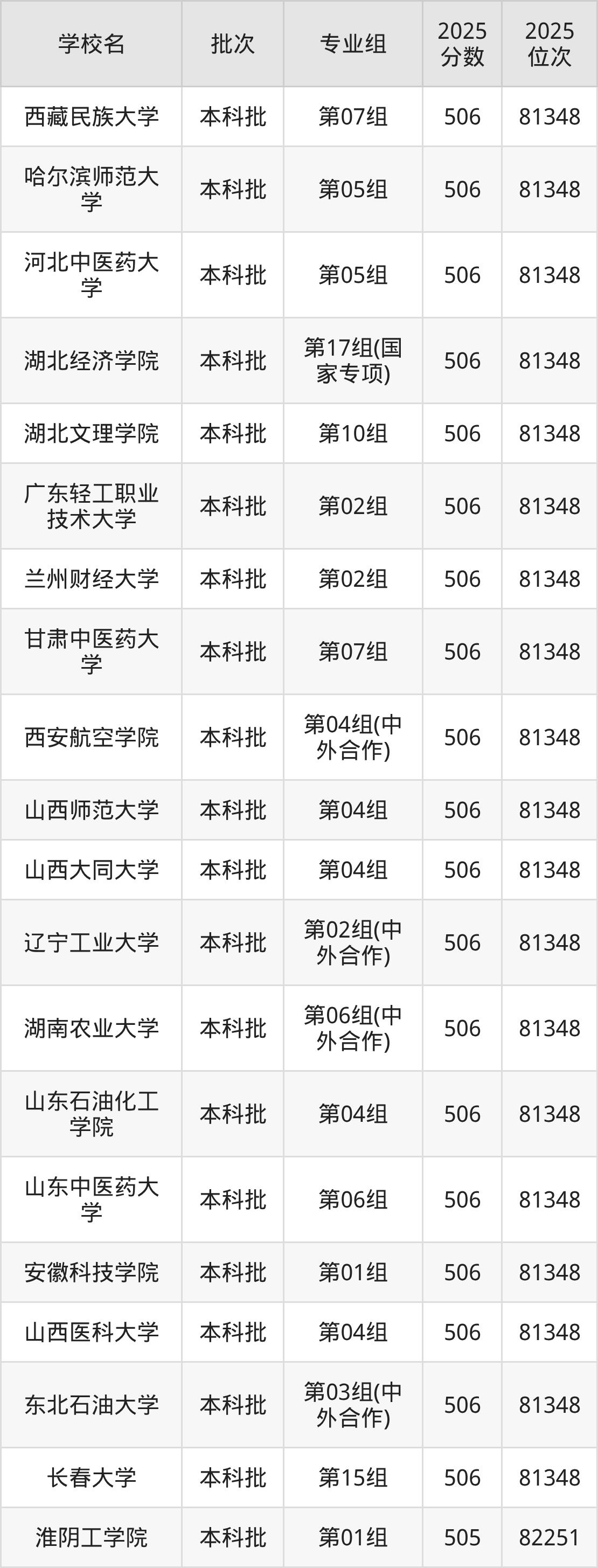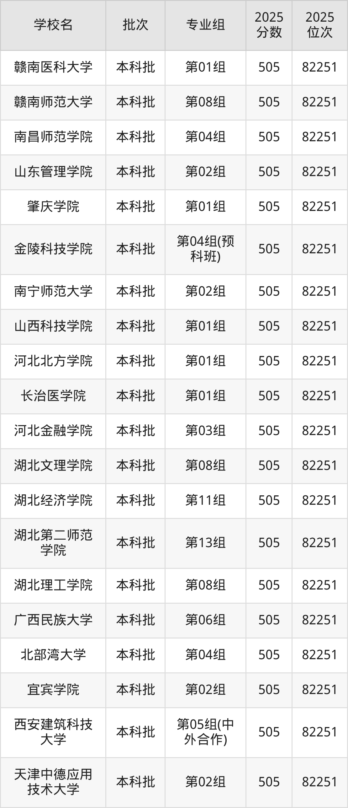 2025年湖北高考物理类505分(81349名~82251名)能上的大学有湖北文理学院第08组、湖北经济学院第11组、湖北第二师范学院第13组、湖北理工学院第08组等。