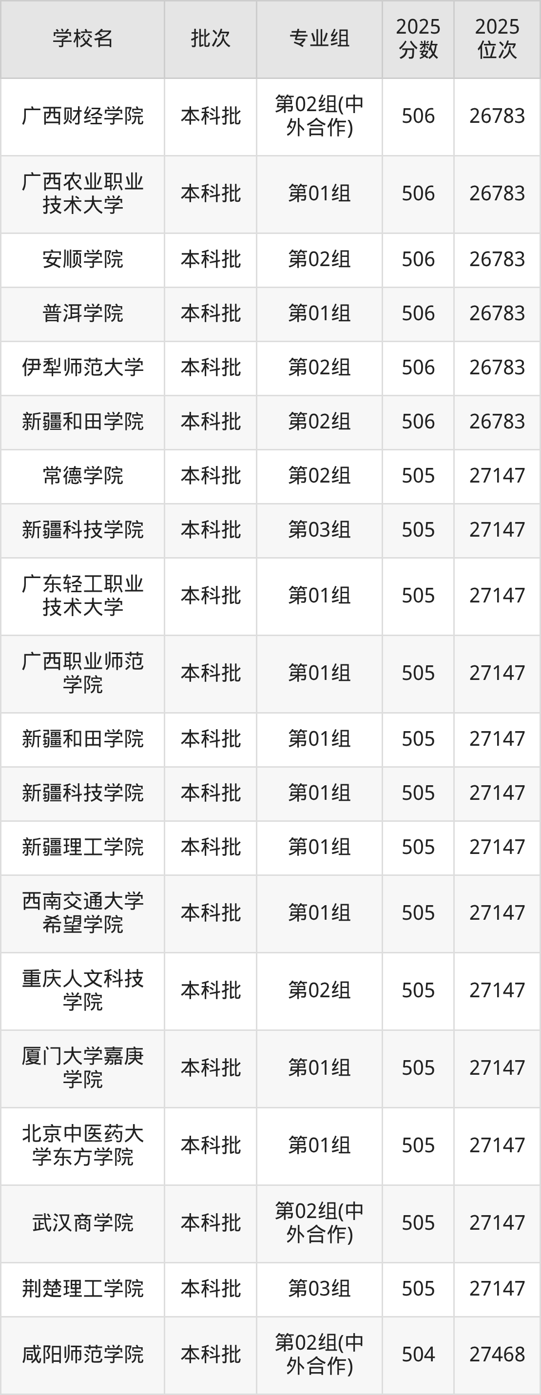 这些都是2026年高考历史类26784名~27147名考生可以报考的大学,更多学校名单如下表所示: