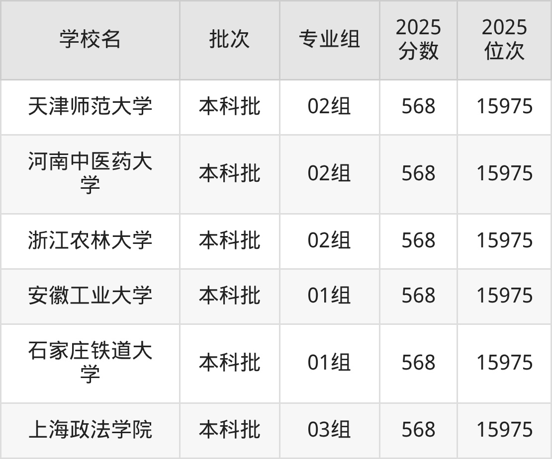 这些都是2026年高考历史类15247名~15613名考生可以报考的大学,更多学校名单如下表所示: