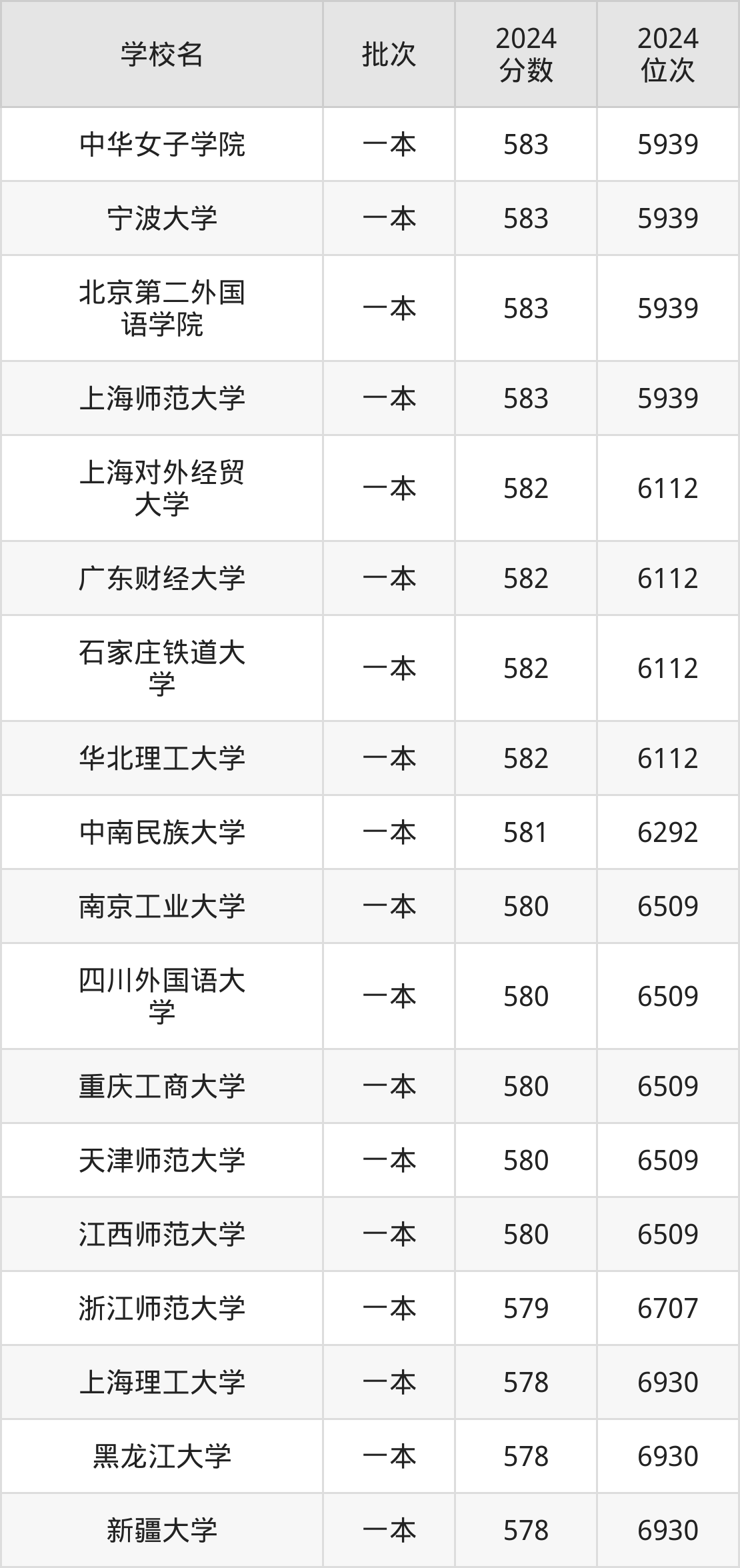 这些都是2025年高考文科6293名~6509名考生可以报考的大学,更多学校名单如下表所示: