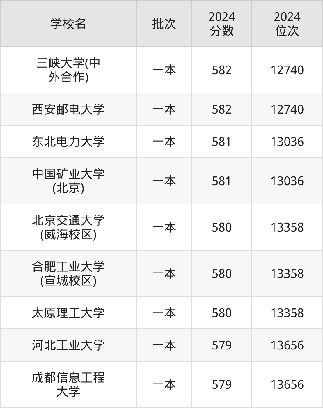 这些都是2025年高考理科13037名~13358名考生可以报考的大学,更多学校名单如下表所示: