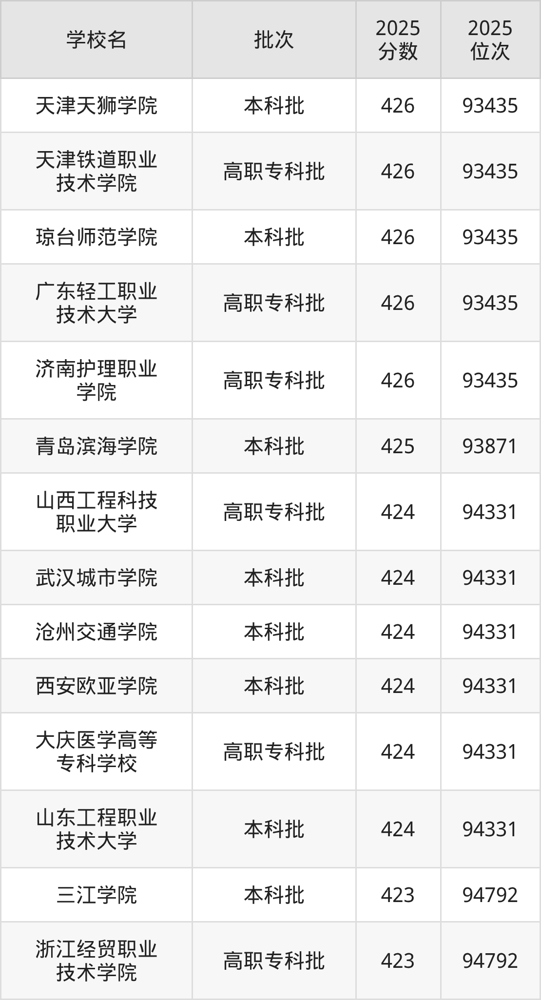 这些都是2026年高考物理类93872名~94331名考生可以报考的大学,更多学校名单如下表所示: