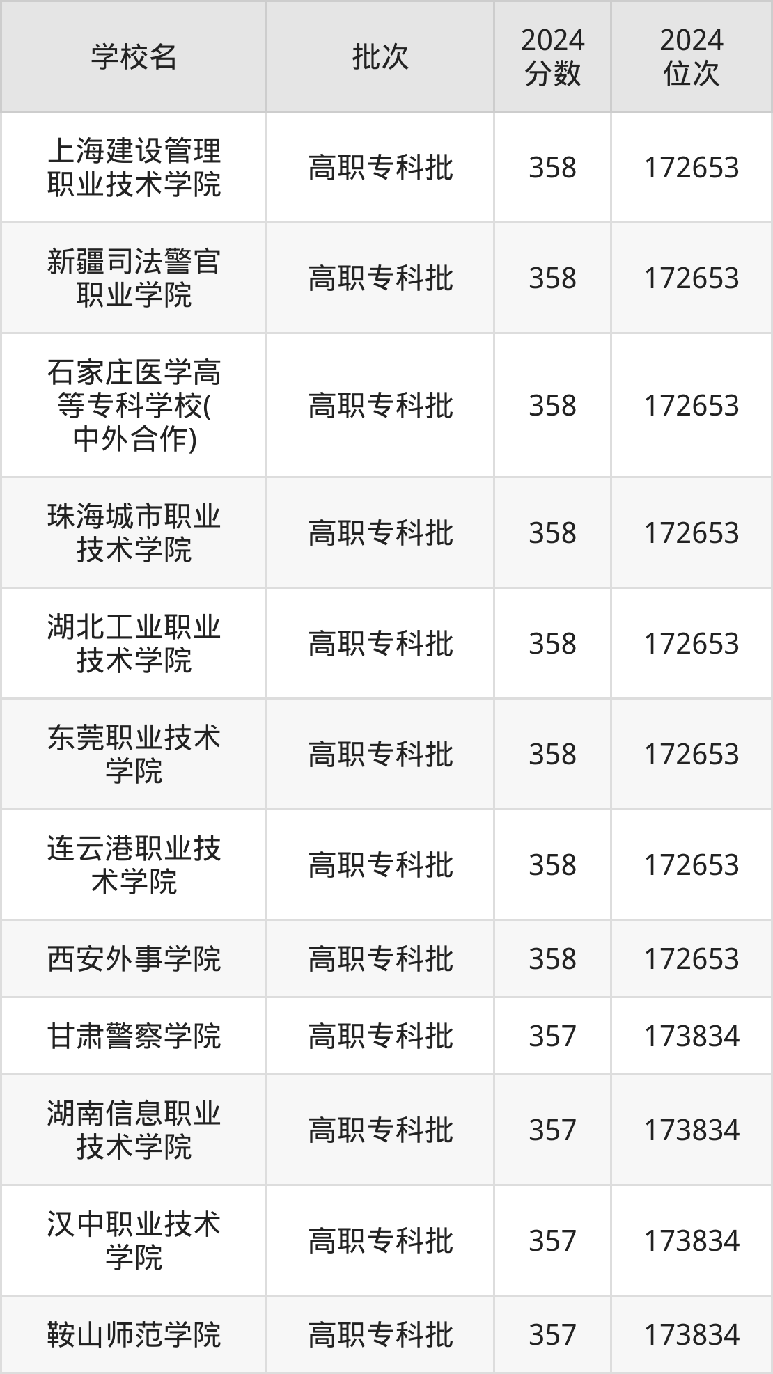 这些都是2025年高考文科172654名~173834名考生可以报考的大学,更多学校名单如下表所示: