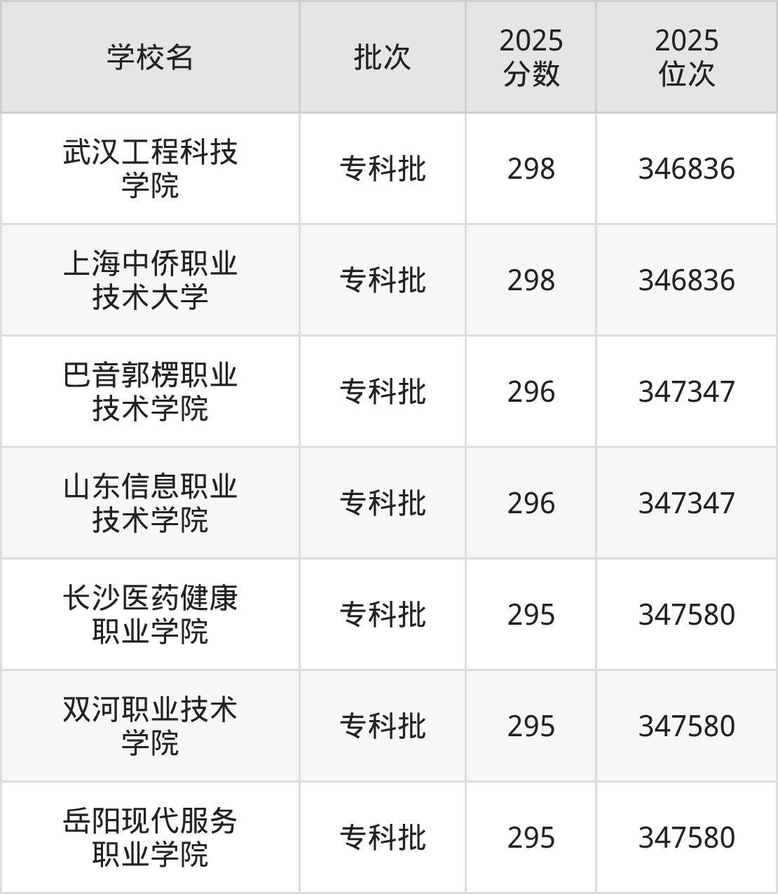 2025年河北高考物理类296分(347081名~347347名)能上的大学有山东信息职业技术学院、巴音郭楞职业技术学院。