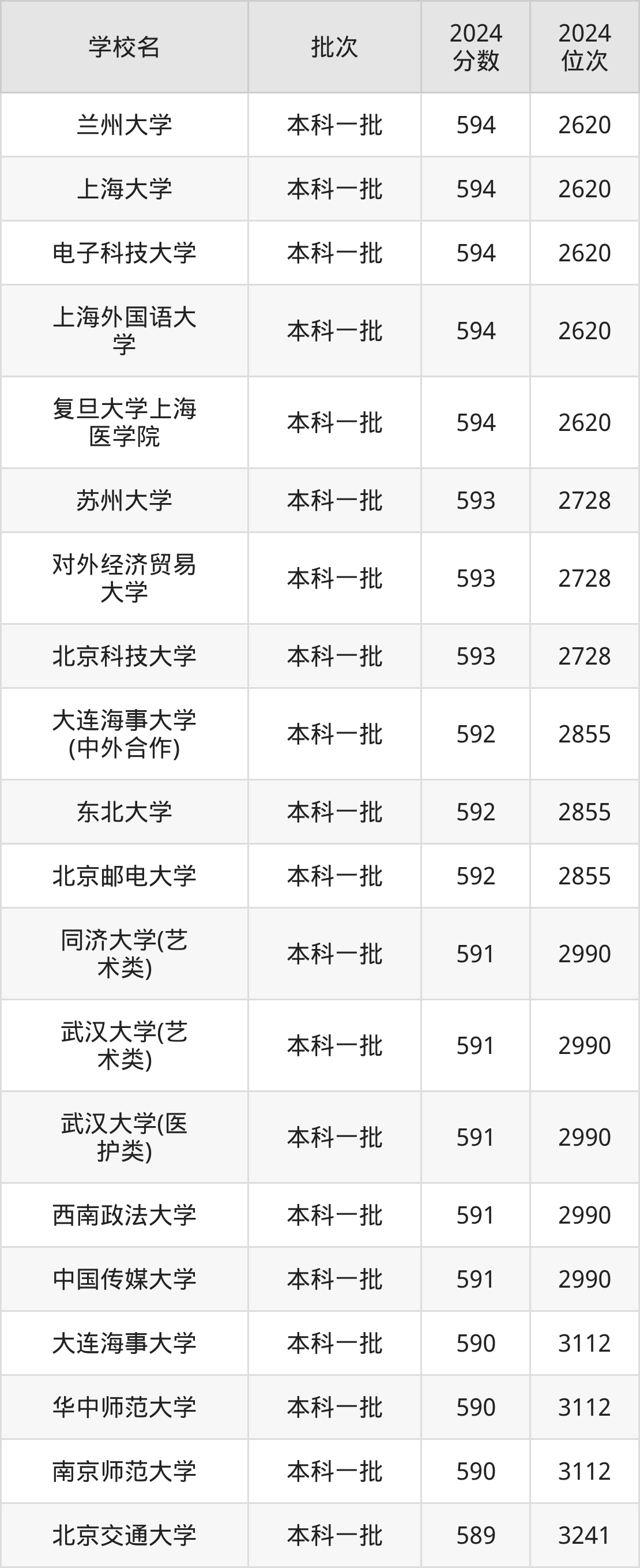 这些都是2025年高考文科3113名~3241名考生可以报考的大学,更多学校名单如下表所示: