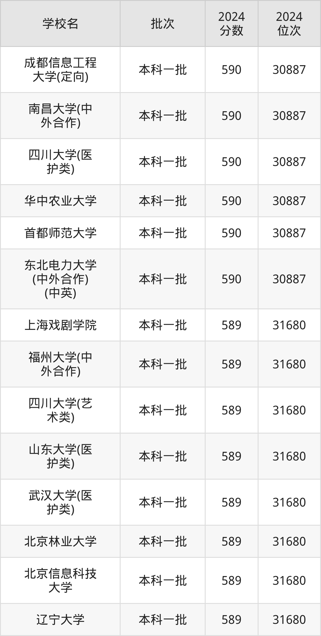 2024年河南高考理科589分(30888名~31680名)能上的大学有北京林业大学、辽宁大学、北京信息科技大学、上海戏剧学院等。