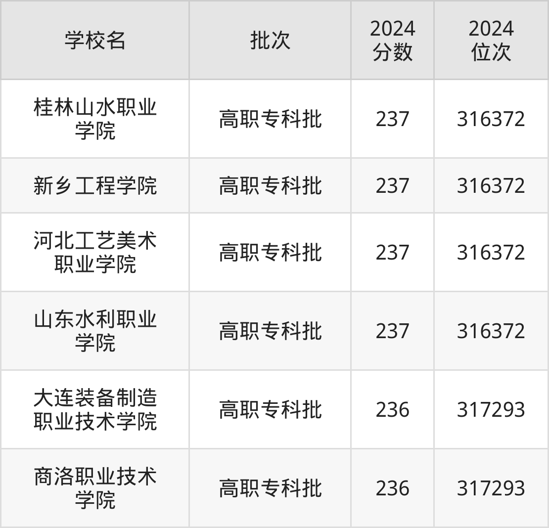 2024年河南高考文科236分(316373名~317293名)能上的大学有大连装备制造职业技术学院、商洛职业技术学院。