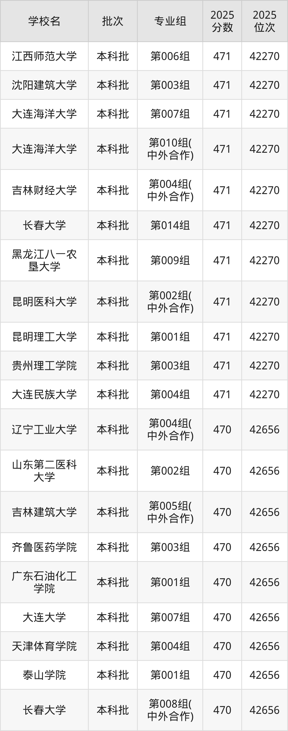 这些都是2026年高考物理类42657名~43011名考生可以报考的大学,更多学校名单如下表所示:
