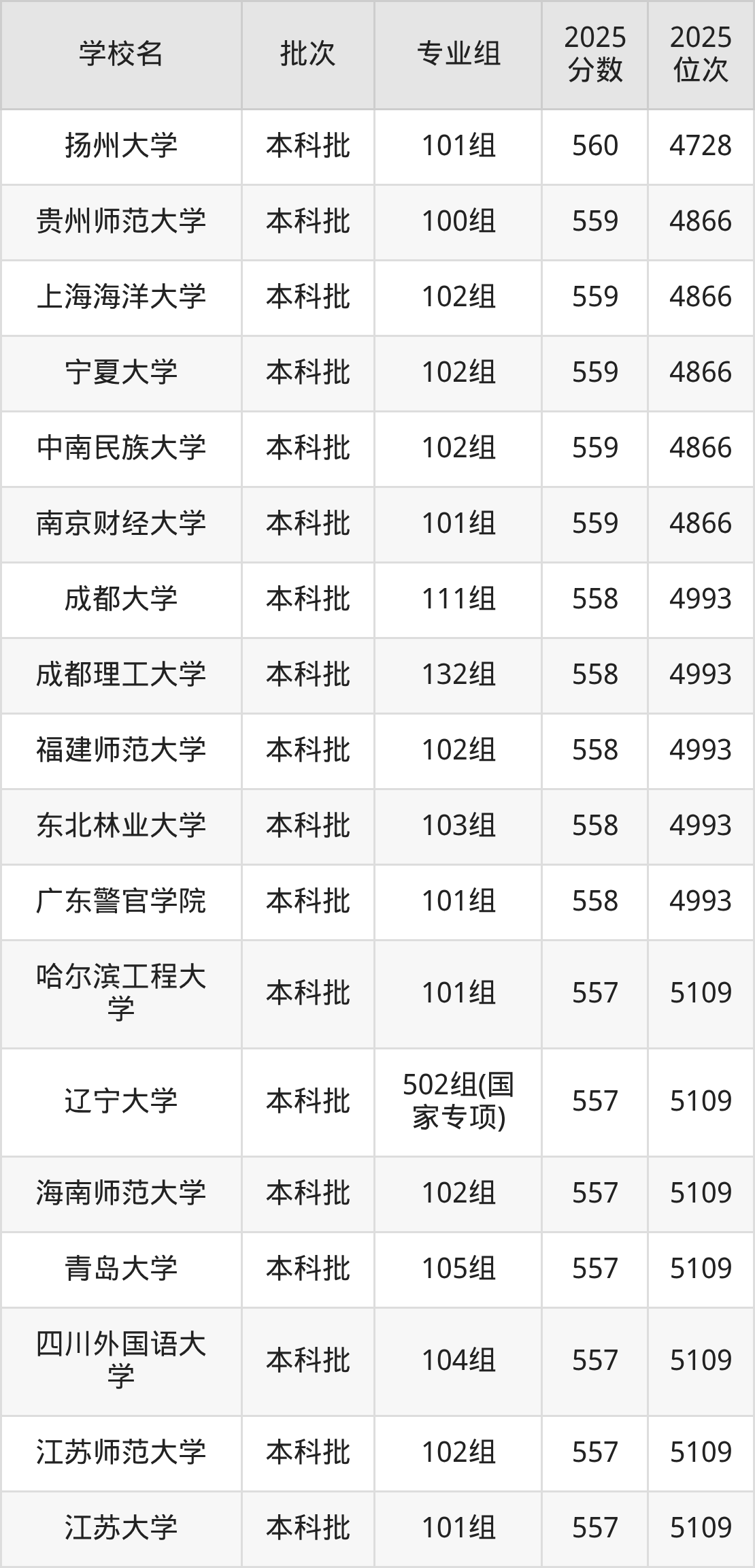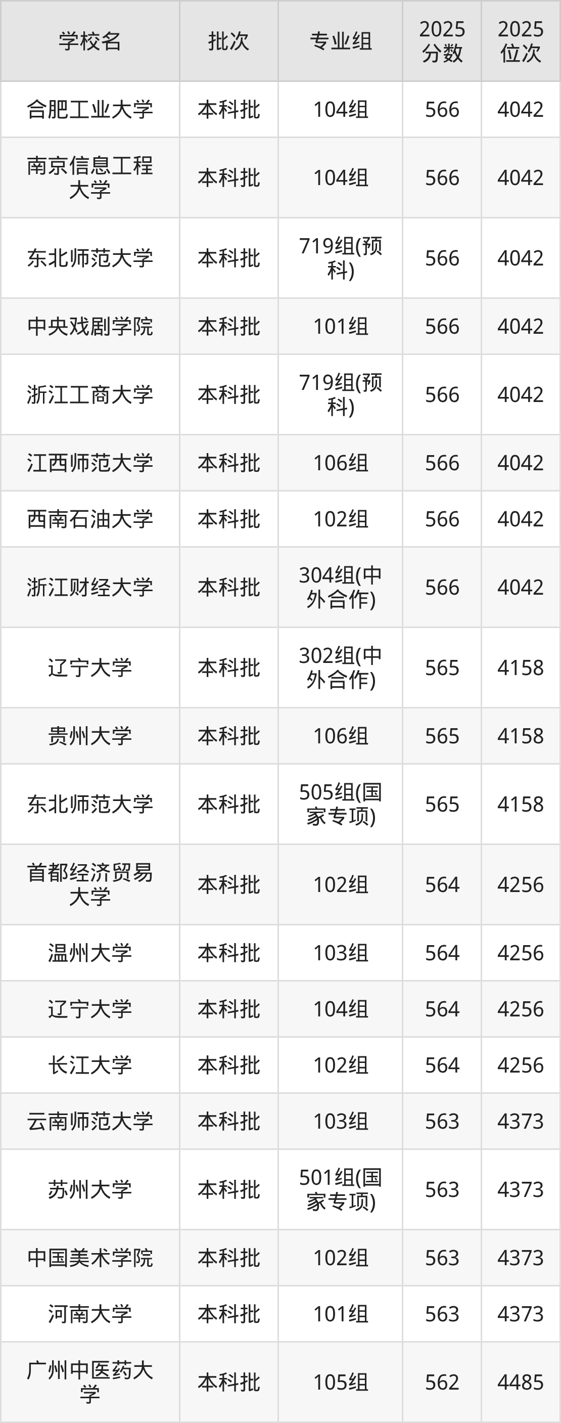 这些都是2026年高考历史类4486名~4615名考生可以报考的大学,更多学校名单如下表所示: