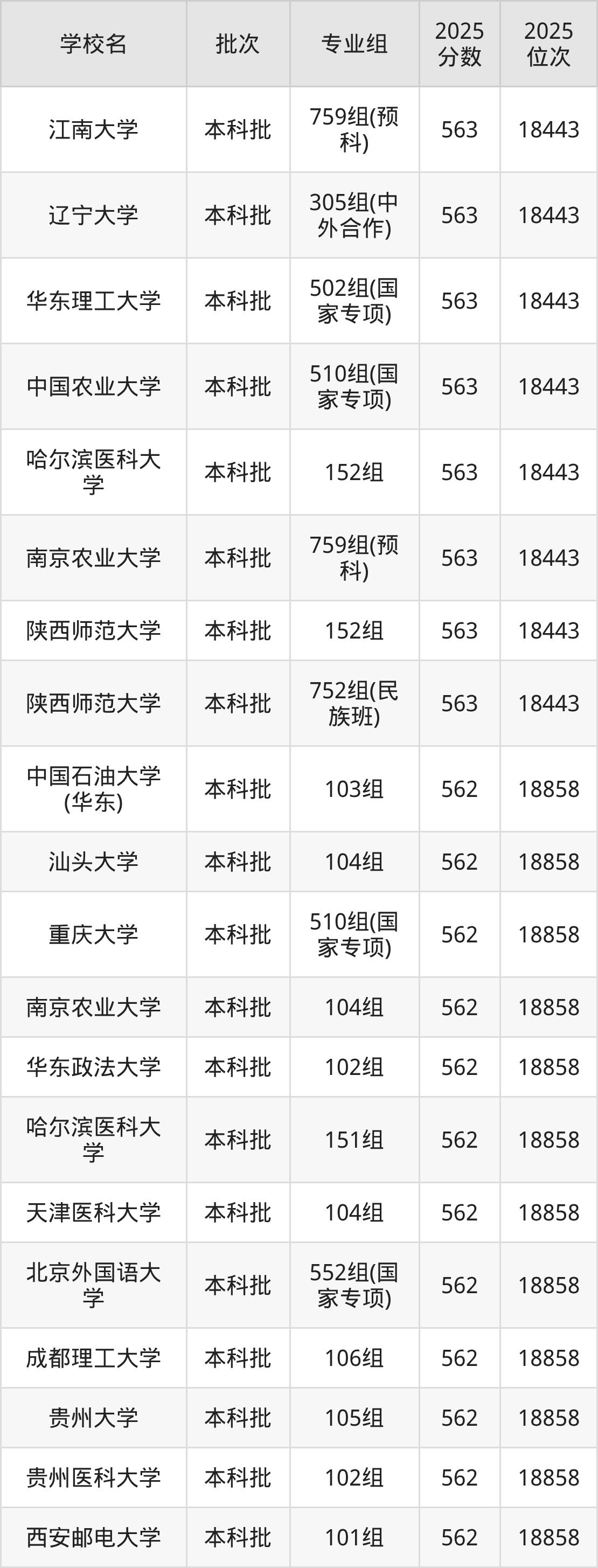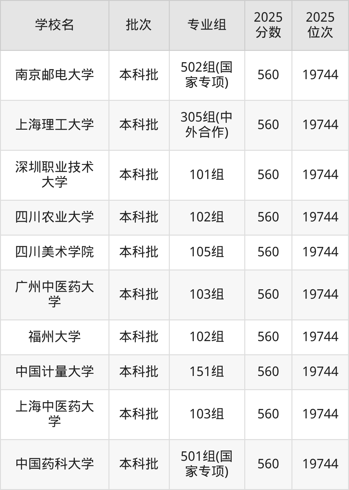 另外录取位次低于该区间(较稳妥)的有四川农业大学102组(19744名)、上海理工大学305组(中外合作)(19744名)等;录取位次高于该区间(可冲)的有贵州大学105组(18858名)、贵州医科大学102组(18858名)等。