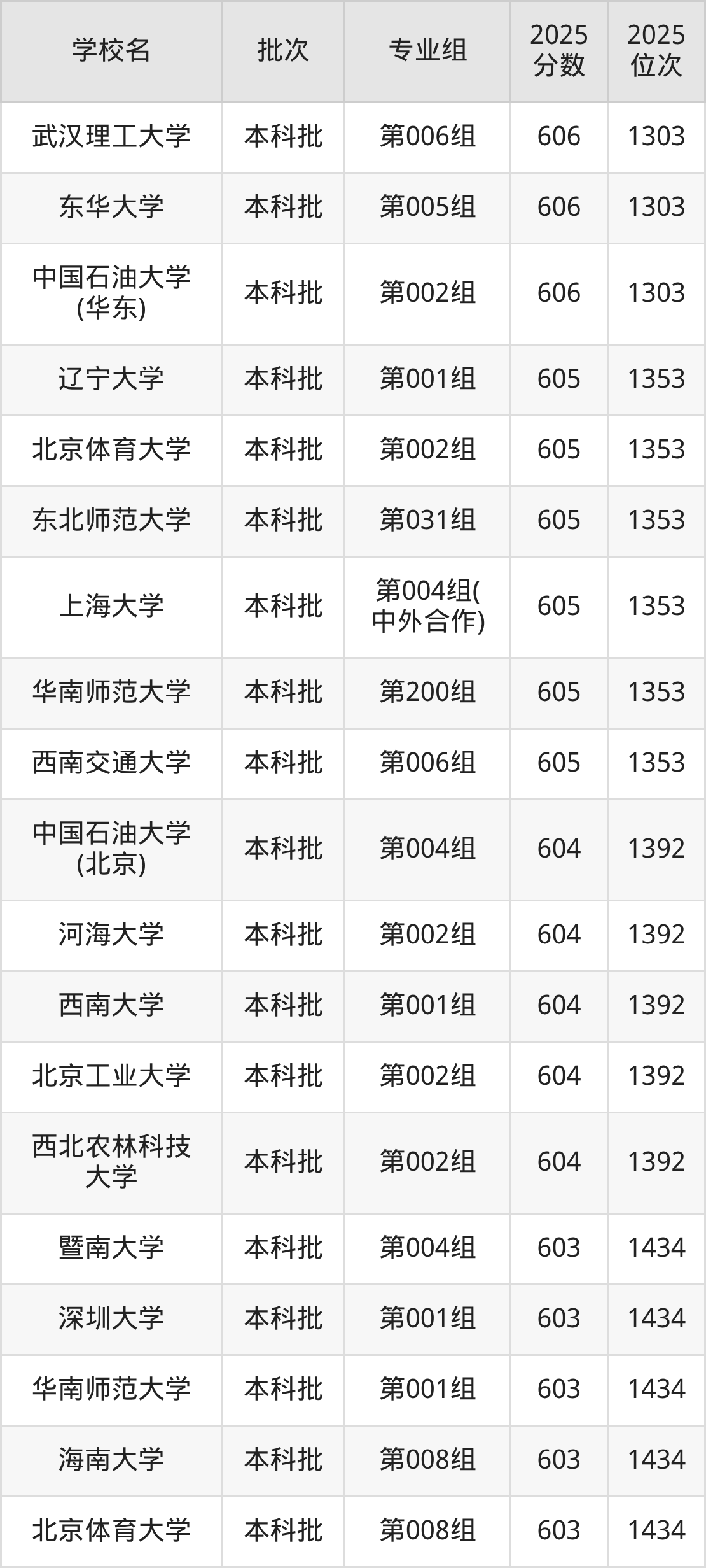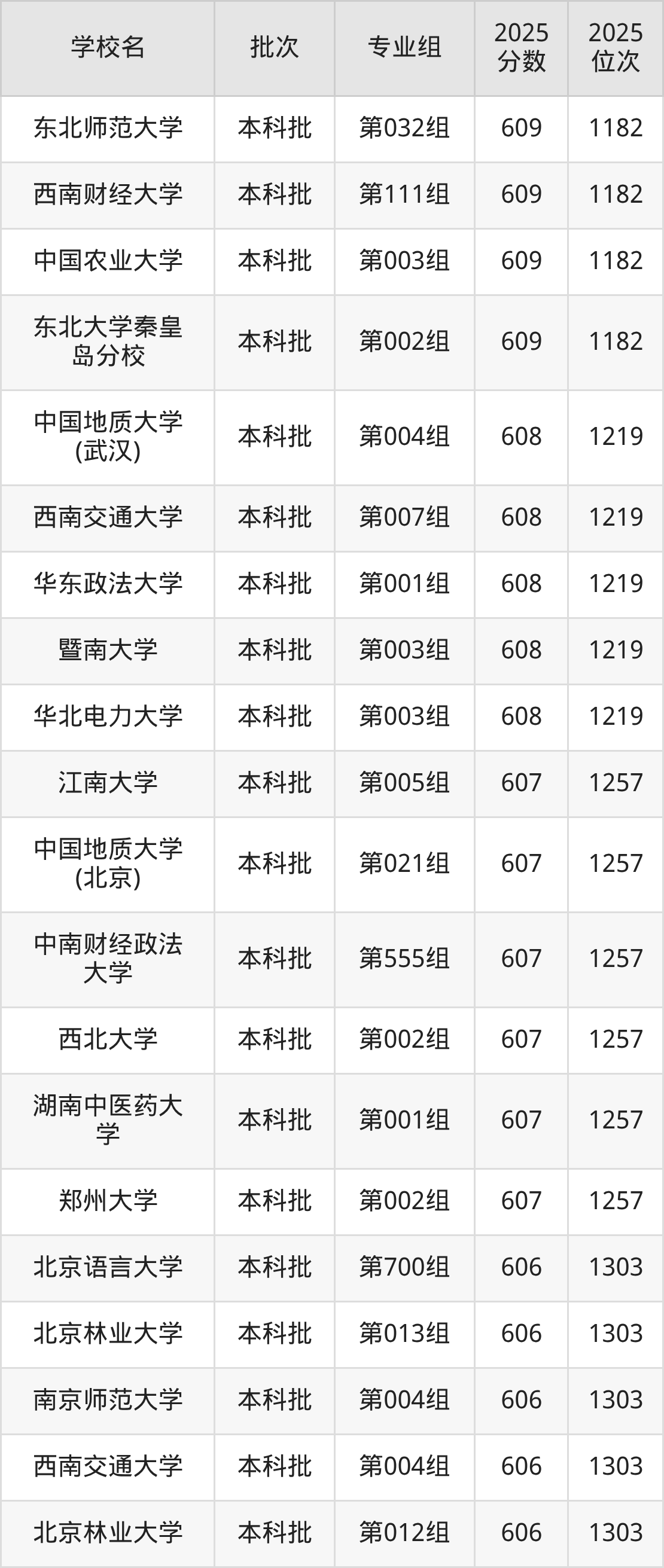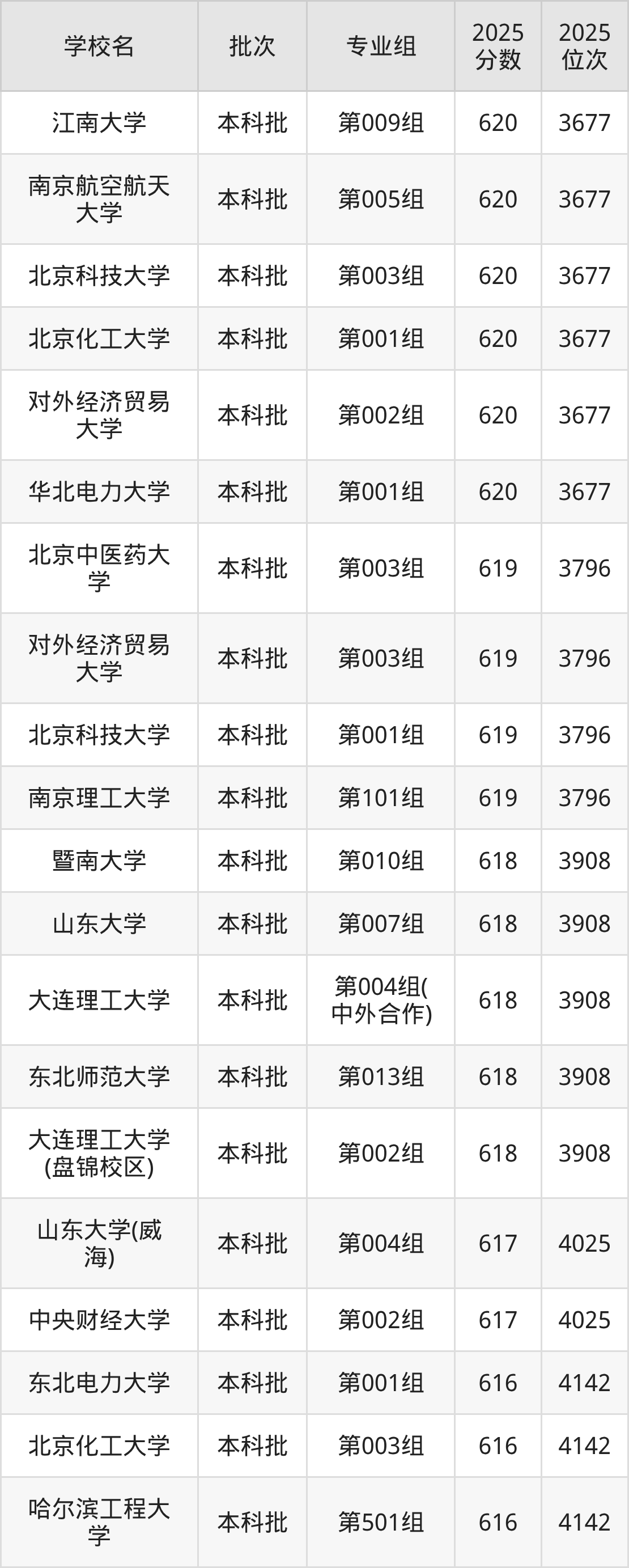 2025年内蒙古高考物理类615分(4143名~4284名)能上的大学有吉林大学第077组、中国海洋大学第003组、江南大学第002组、中国海洋大学第004组(中外合作)等。