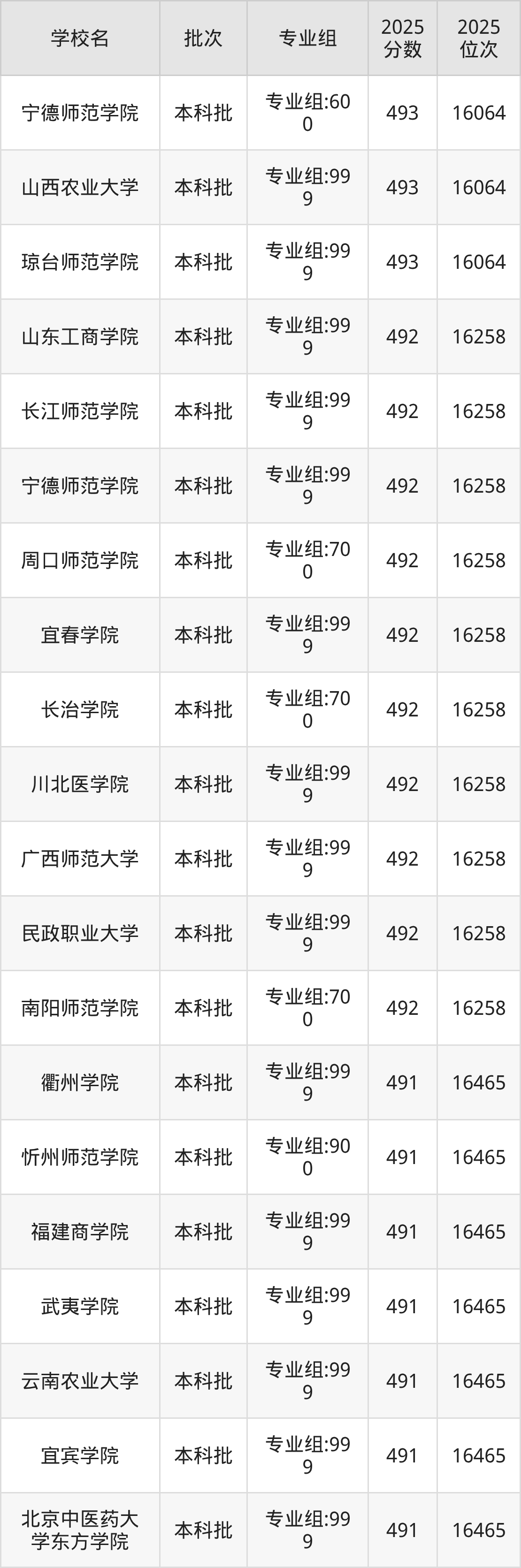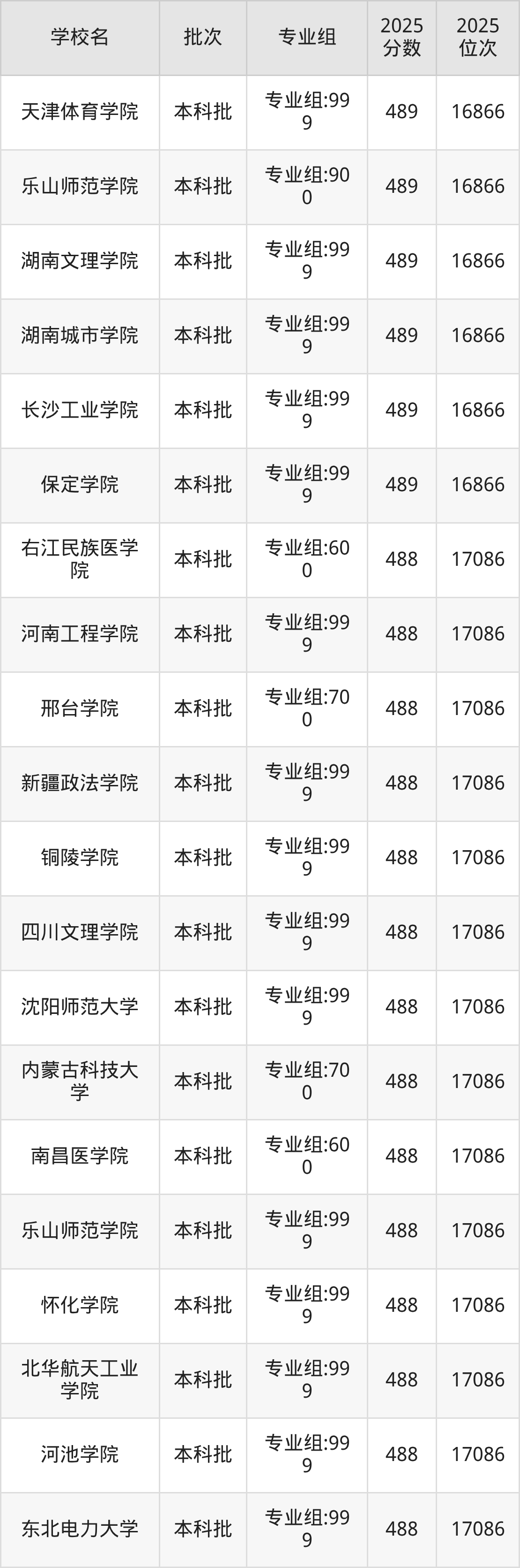 这些都是2026年高考历史类16466名~16669名考生可以报考的大学,更多学校名单如下表所示: