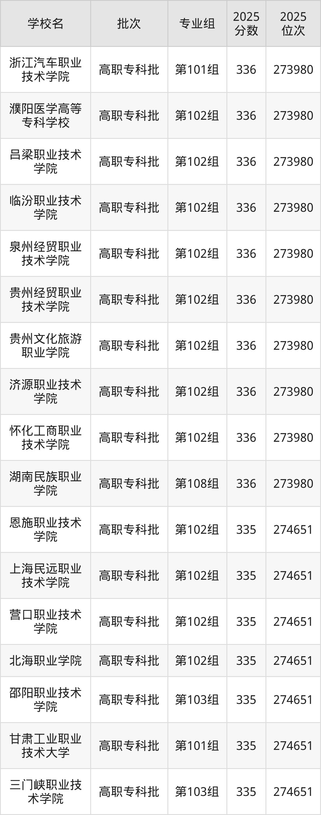 2025年湖南高考物理类335分(273981名~274651名)能上的大学有营口职业技术学院第102组、上海民远职业技术学院第102组、恩施职业技术学院第102组、北海职业学院第102组等。