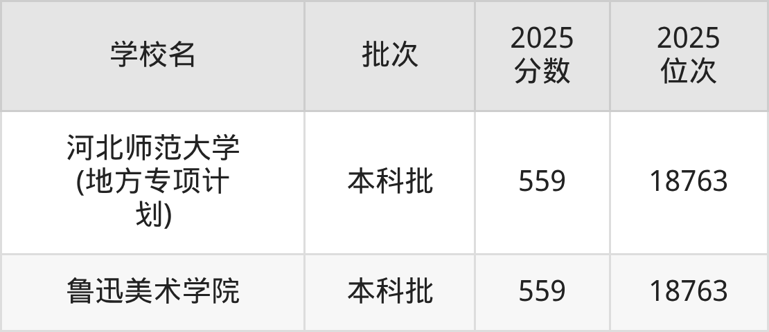 这些都是2026年高考历史类17999名~18388名考生可以报考的大学,更多学校名单如下表所示: