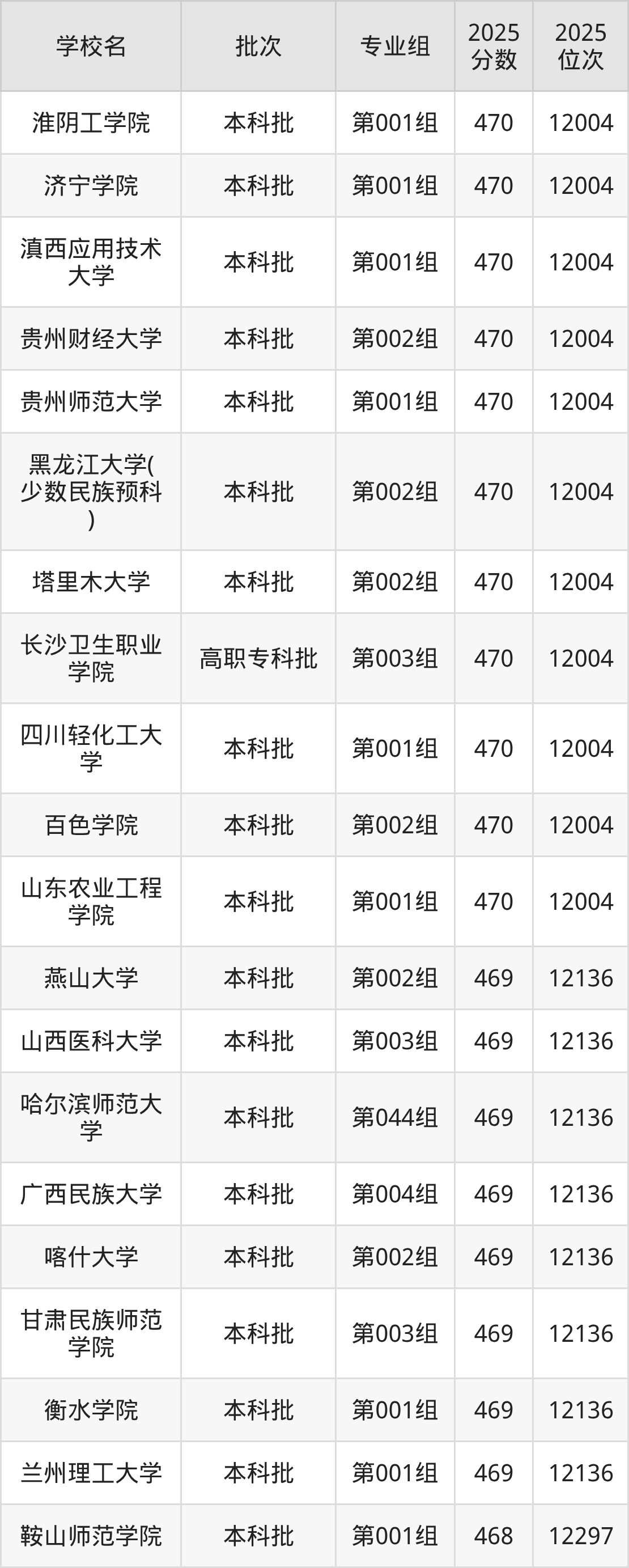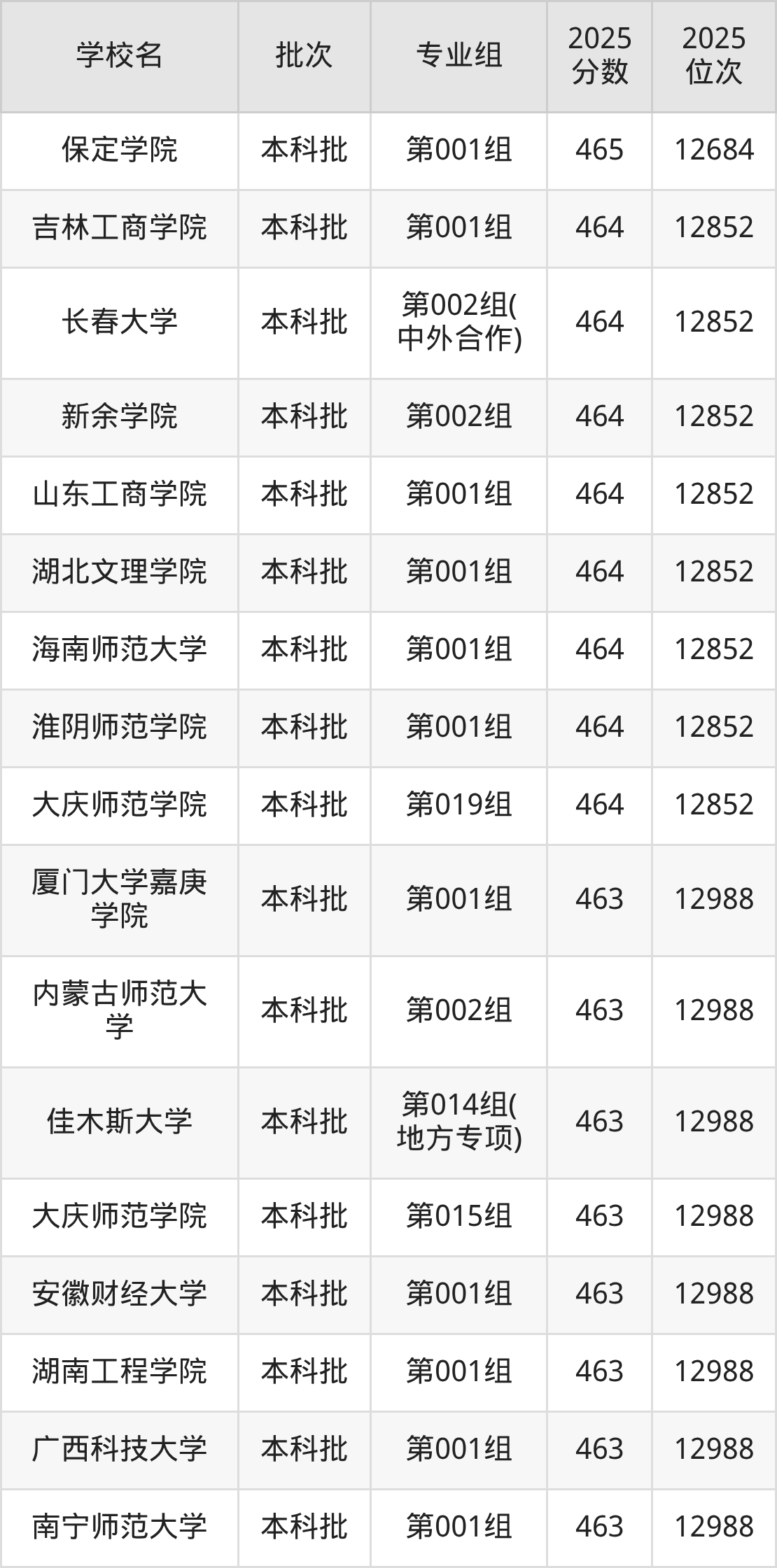 这些都是2026年高考历史类12431名~12571名考生可以报考的大学,更多学校名单如下表所示: