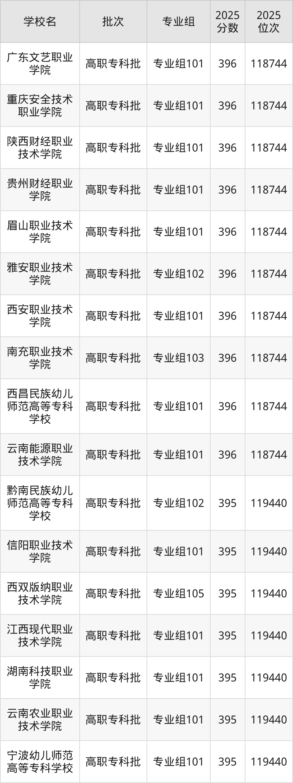 2025年四川高考历史类395分(118745名~119440名)能上的大学有宁波幼儿师范高等专科学校专业组101、西双版纳职业技术学院专业组105、云南农业职业技术学院专业组101、湖南科技职业学院专业组101等。