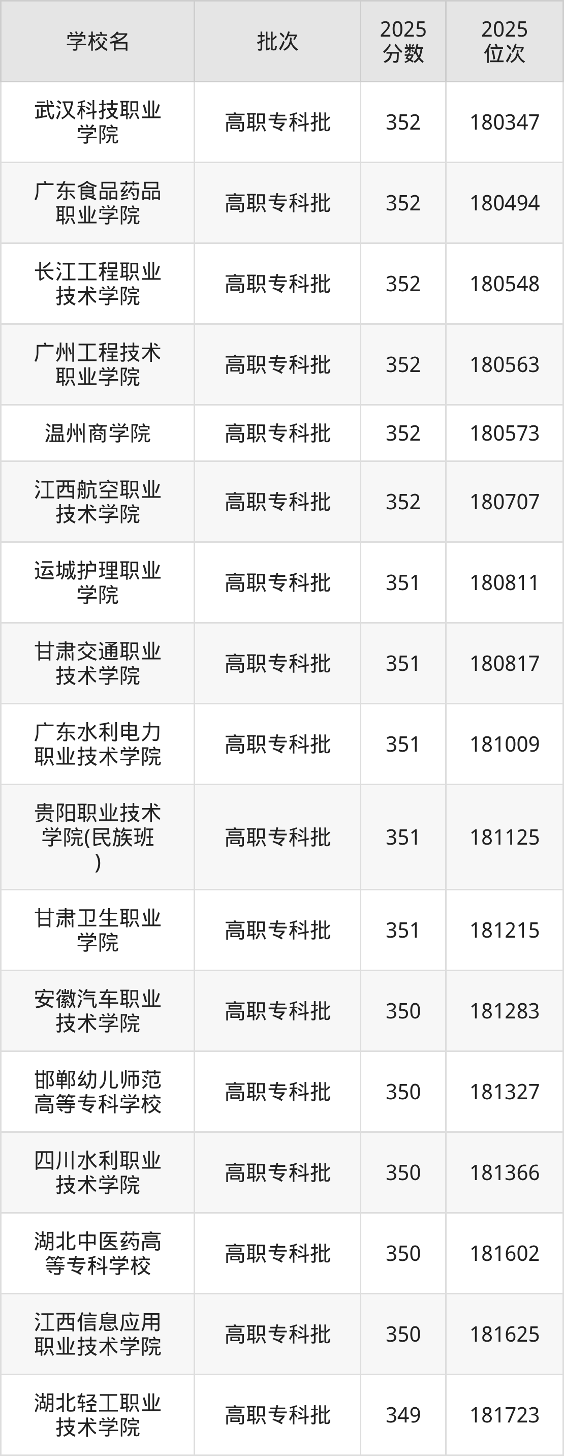 2025年贵州高考物理类351分(180750名~181223名)能上的大学有运城护理职业学院、贵阳职业技术学院(民族班)、甘肃卫生职业学院、广东水利电力职业技术学院等。