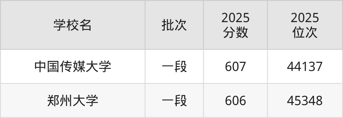 2025年浙江高考607分(43943名~45001名)能上的大学有中国传媒大学。