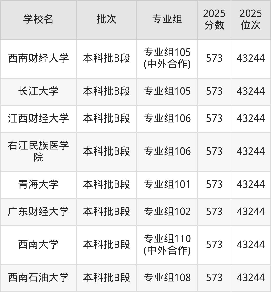 2025年四川高考物理类573分(42396名~43244名)能上的大学有西南石油大学专业组108、西交利物浦大学专业组102(中外合作)、广东财经大学专业组102、哈尔滨理工大学专业组105等。