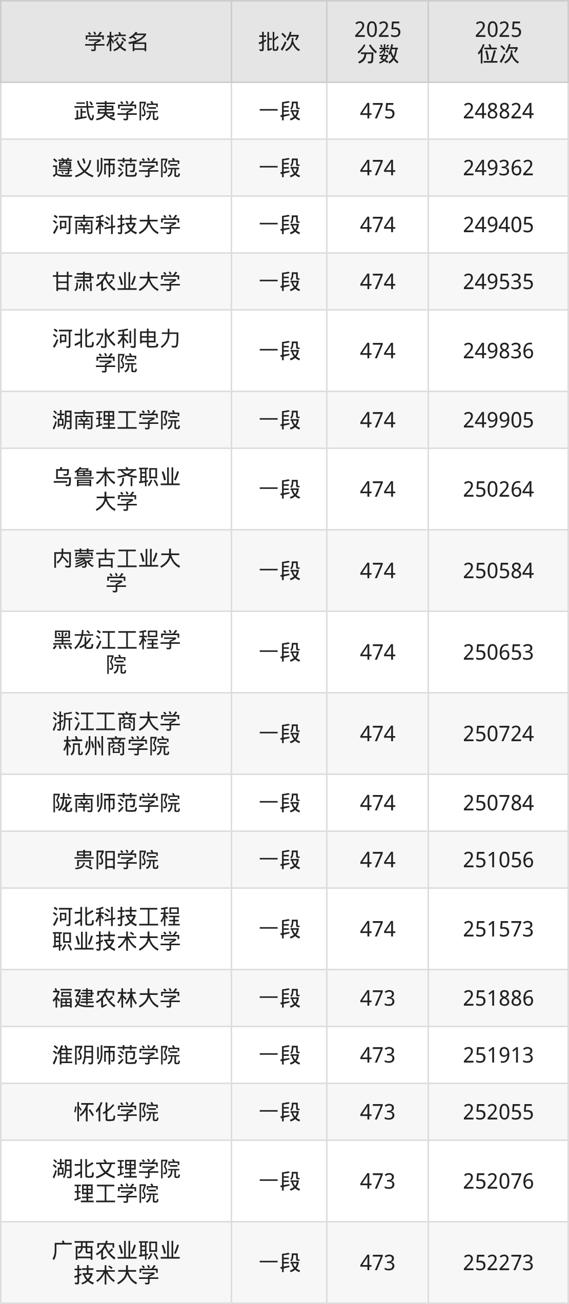 这些都是2026年高考249286名~251794名考生可以报考的大学,更多学校名单如下表所示: