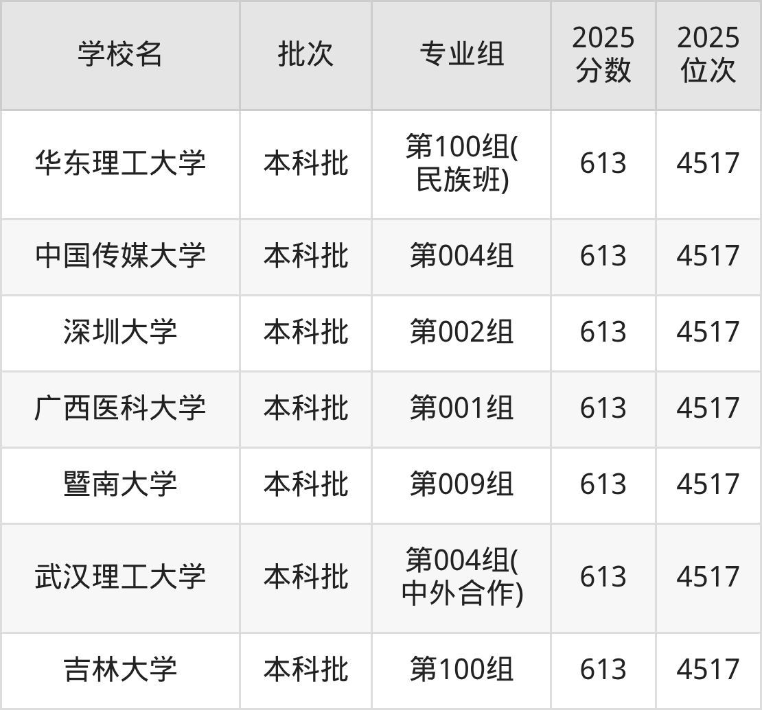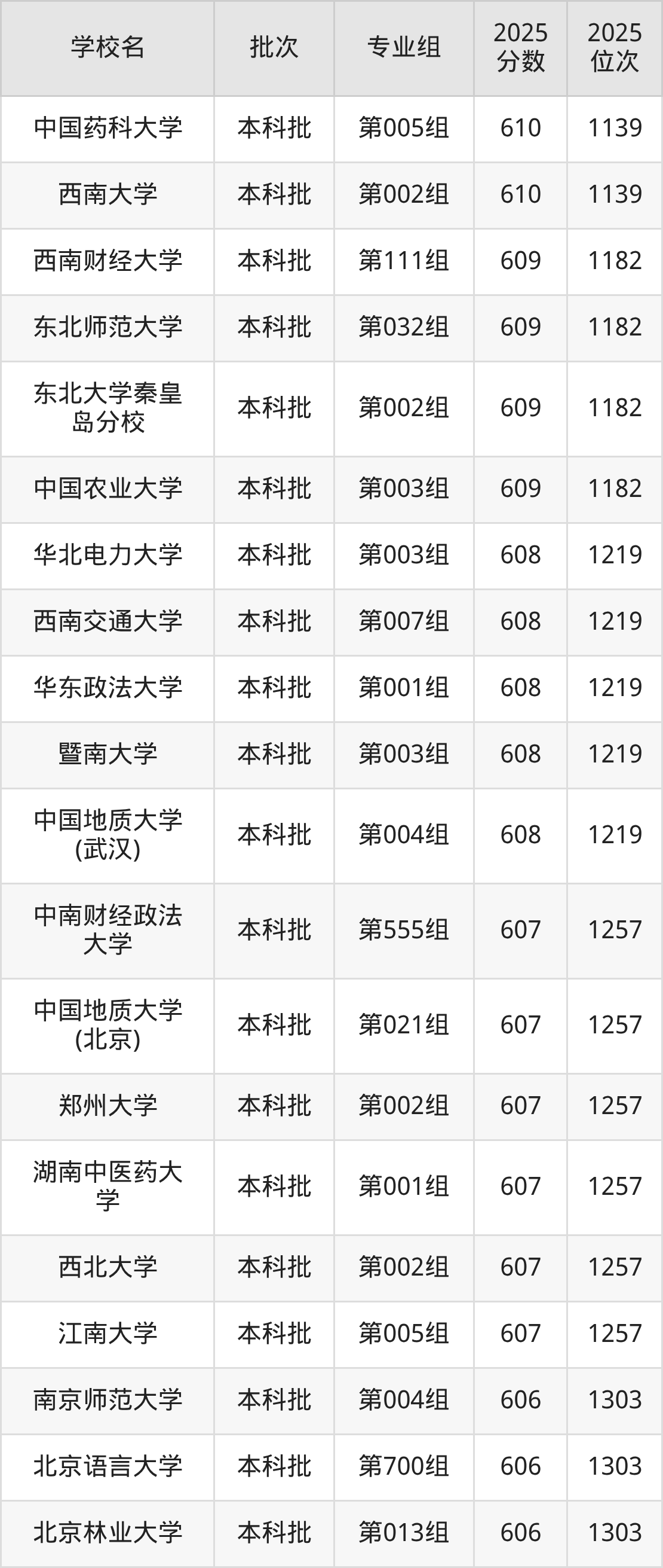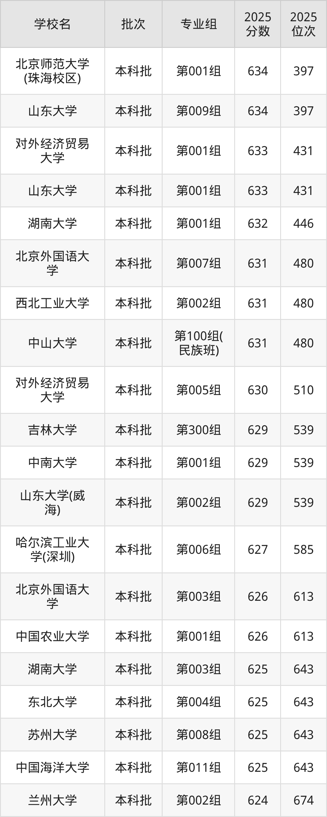 由于高考录取分数线历年波动较大,因此本文以该分数对应的位次排名为大家整理能上的大学名单。