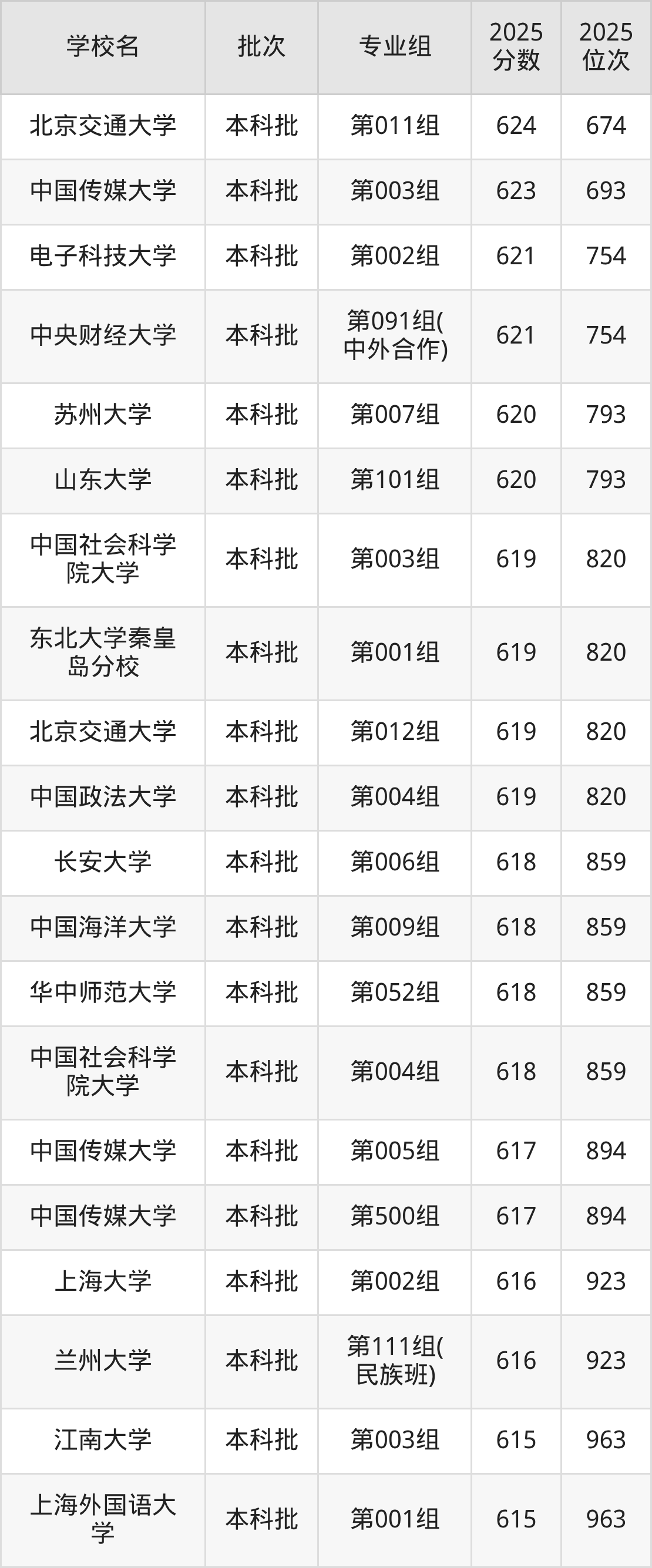 内蒙古高考616分:历史类排名923位、物理类排名4142位。该分数位次对应能上的大学历史类有兰州大学第111组(民族班)、上海大学第002组;物理类有北京化工大学第003组、南京信息工程大学第201组(定向),更多名单如下文所示,2026届考生可参考。