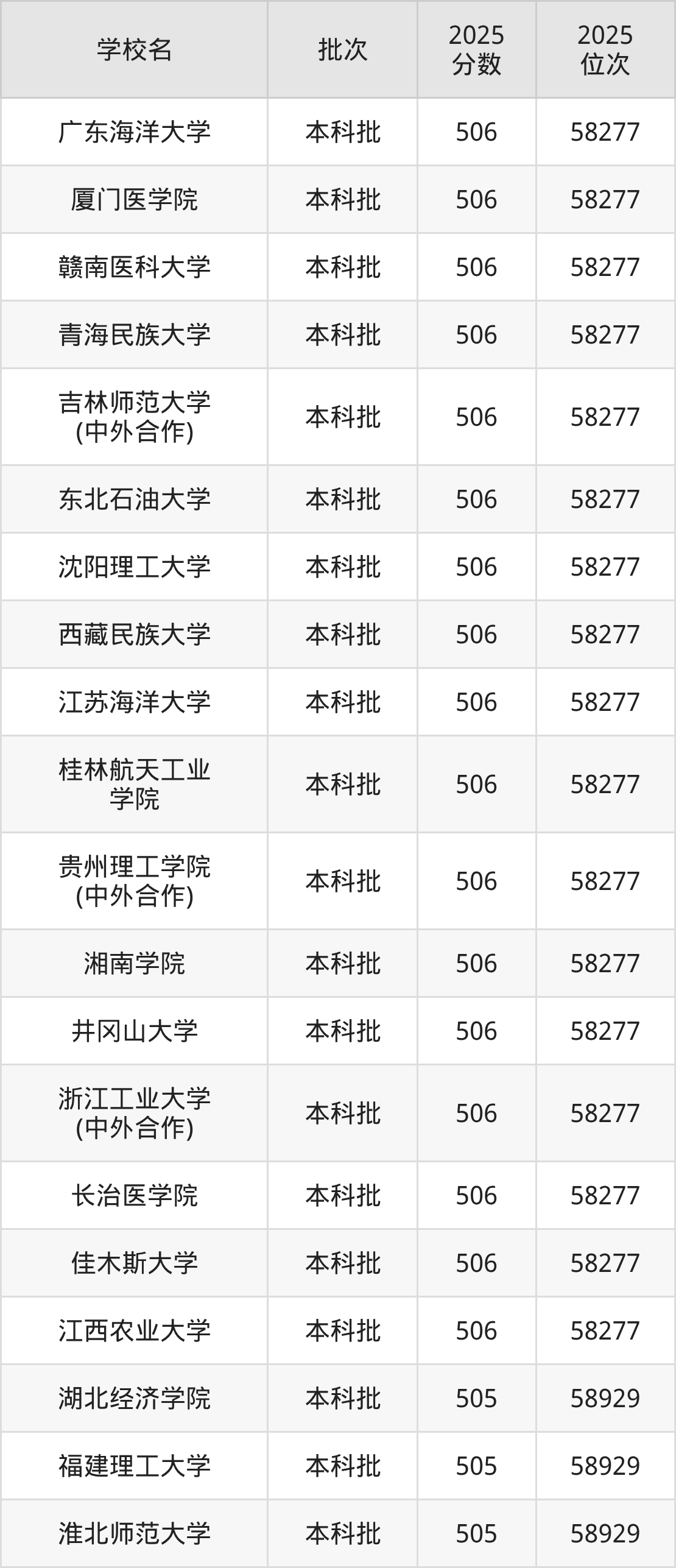 这些都是2026年高考物理类58278名~58929名考生可以报考的大学,更多学校名单如下表所示: