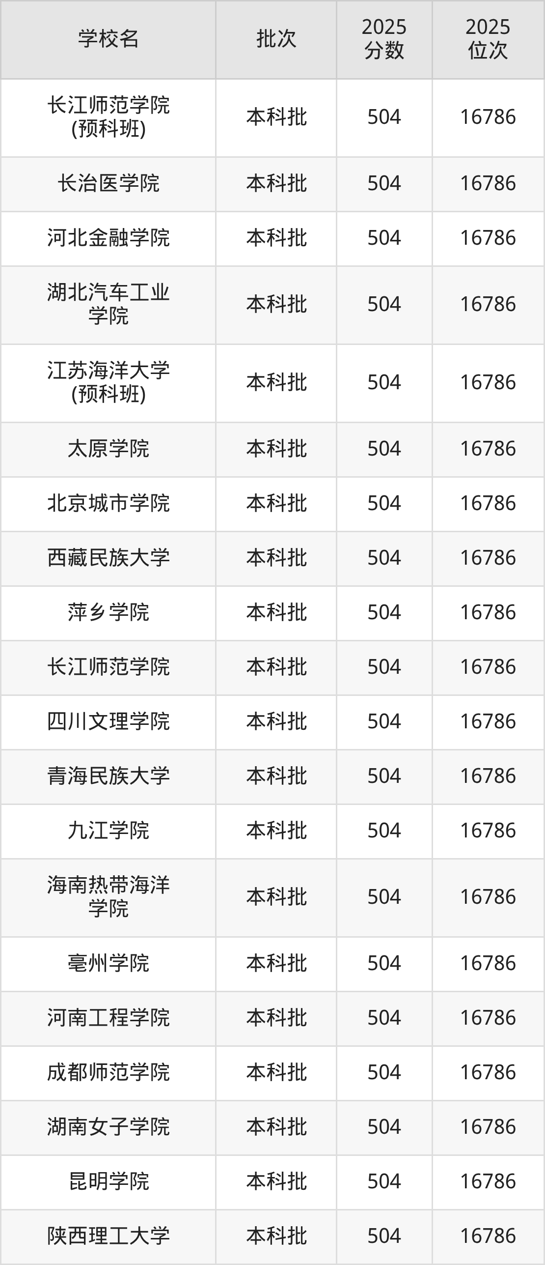 这些都是2026年高考历史类16289名~16516名考生可以报考的大学,更多学校名单如下表所示: