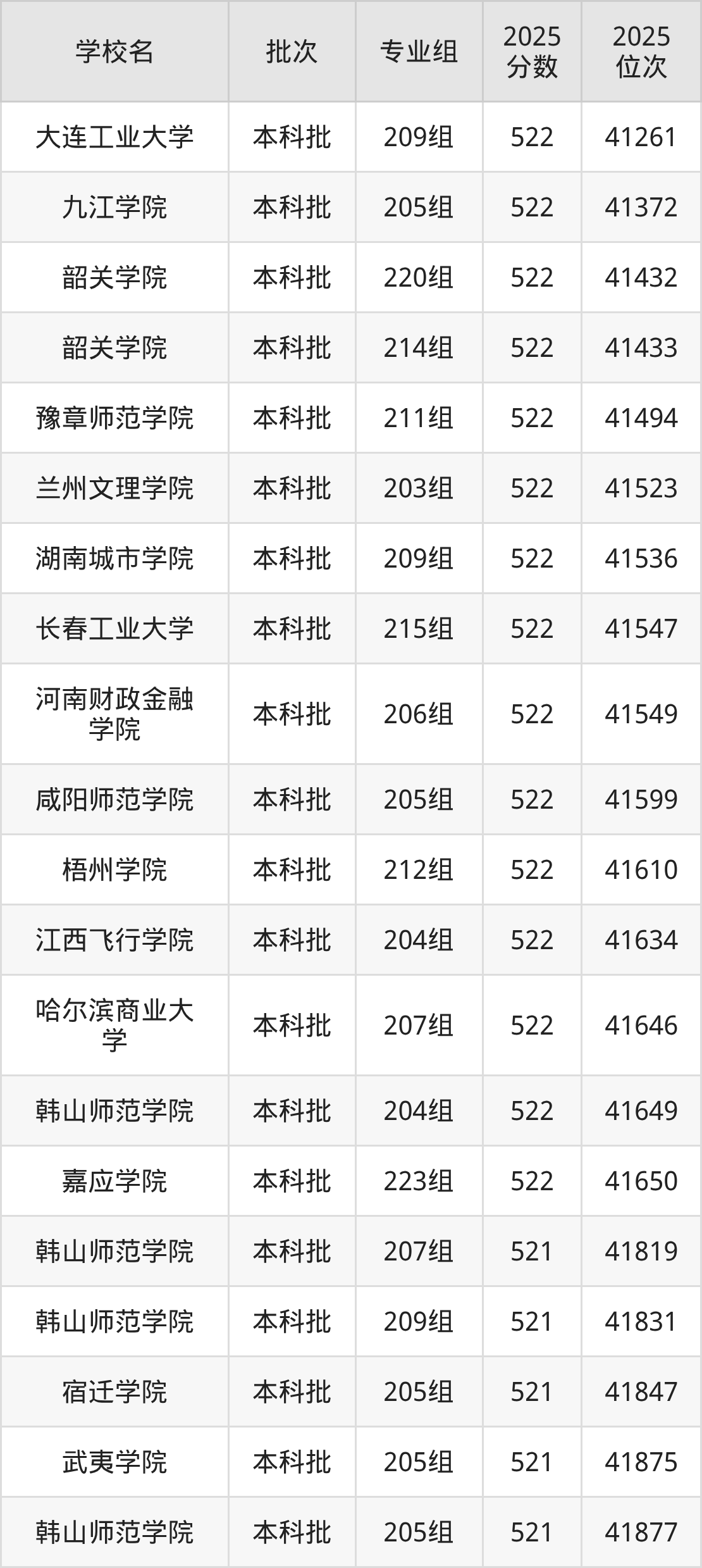 这些都是2026年高考物理类126595名~128289名考生可以报考的大学,更多学校名单如下表所示: