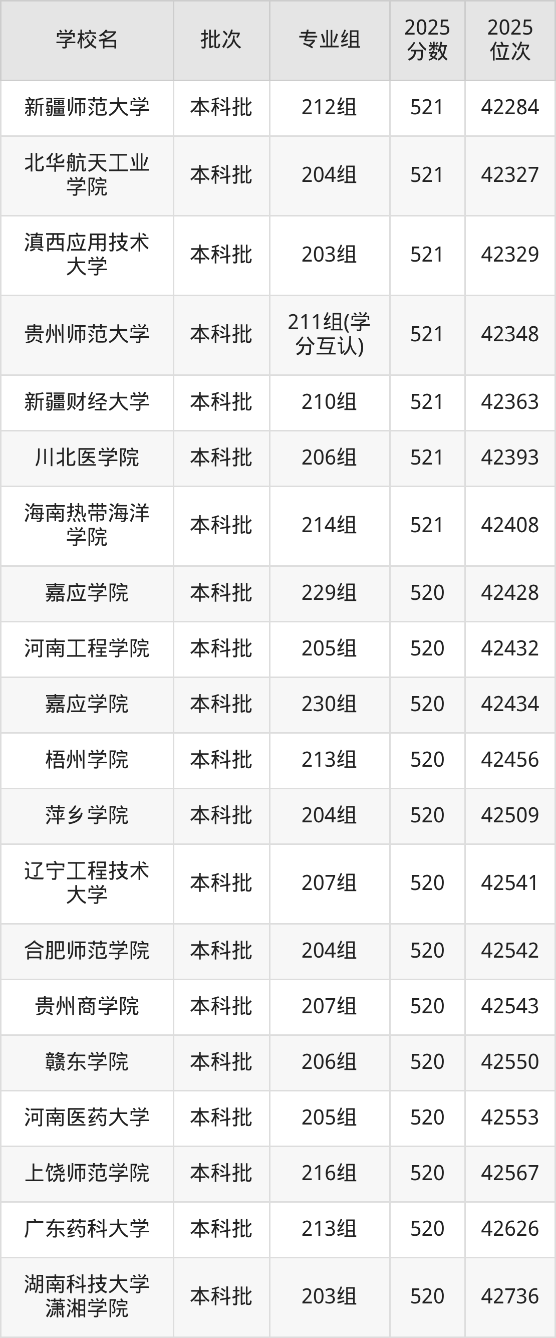 2025年广东高考物理类521分(126595名~128289名)能上的大学有北京语言大学216组(中外合作)、大连交通大学208组(中外合作)、安徽农业大学208组、泉州师范学院214组等。