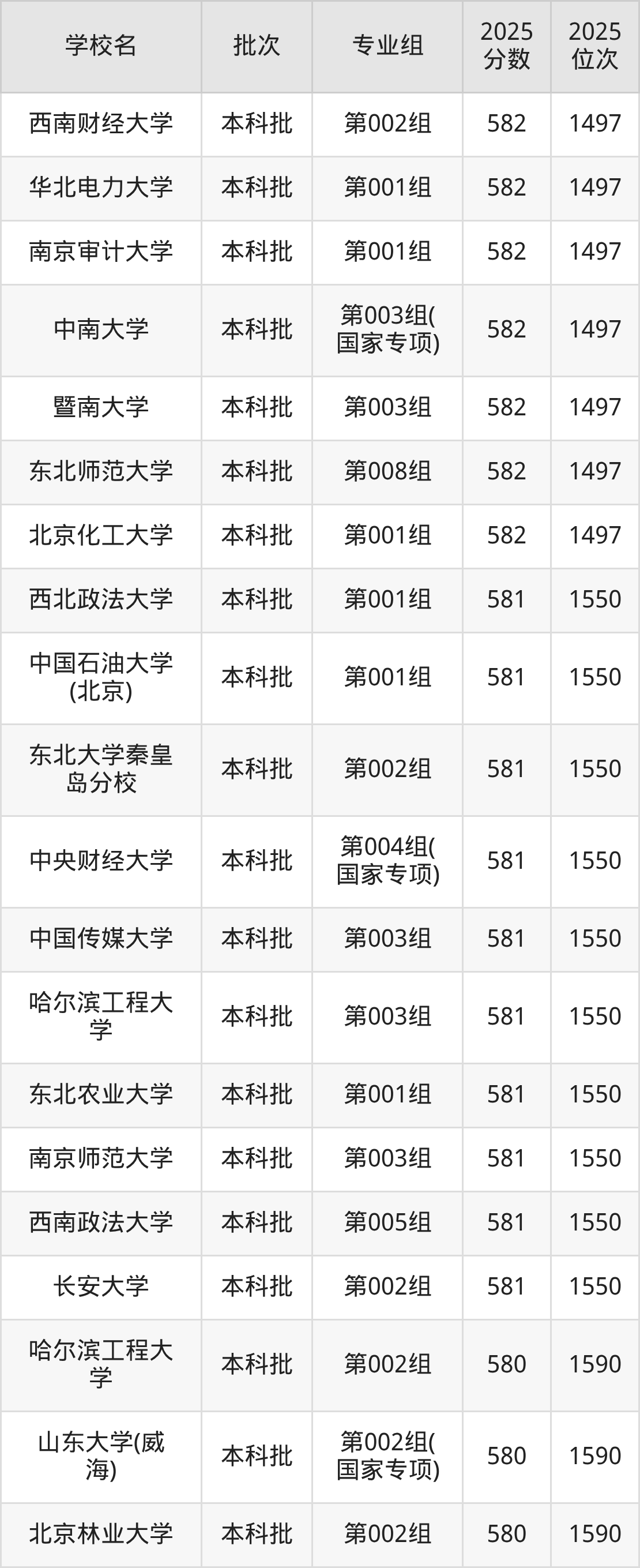由于高考录取分数线历年波动较大,因此本文以该分数对应的位次排名为大家整理能上的大学名单。