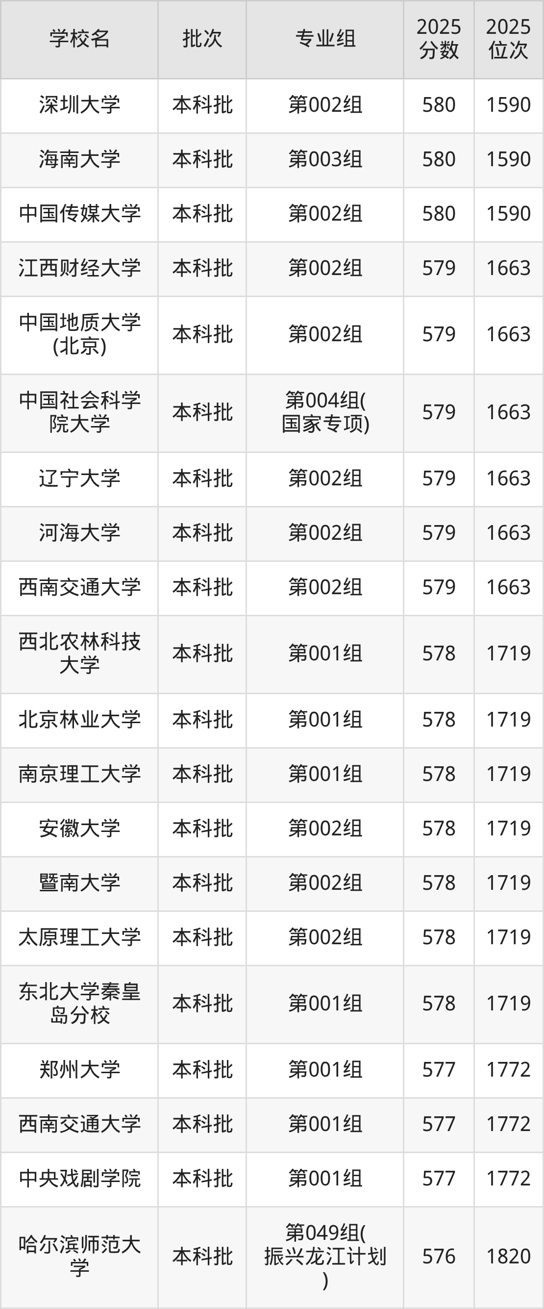 2025年黑龙江高考历史类578分(1664名~1719名)能上的大学有北京林业大学第001组、太原理工大学第002组、东北大学秦皇岛分校第001组、南京理工大学第001组等。