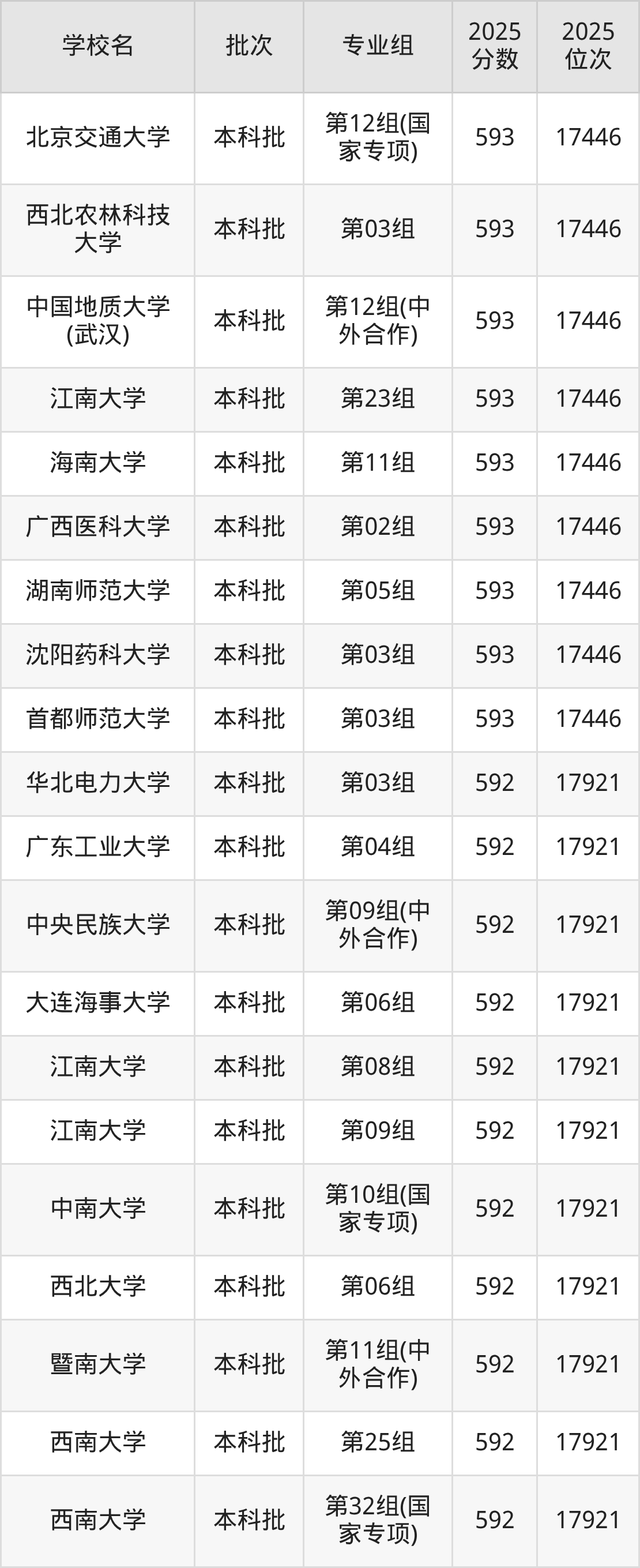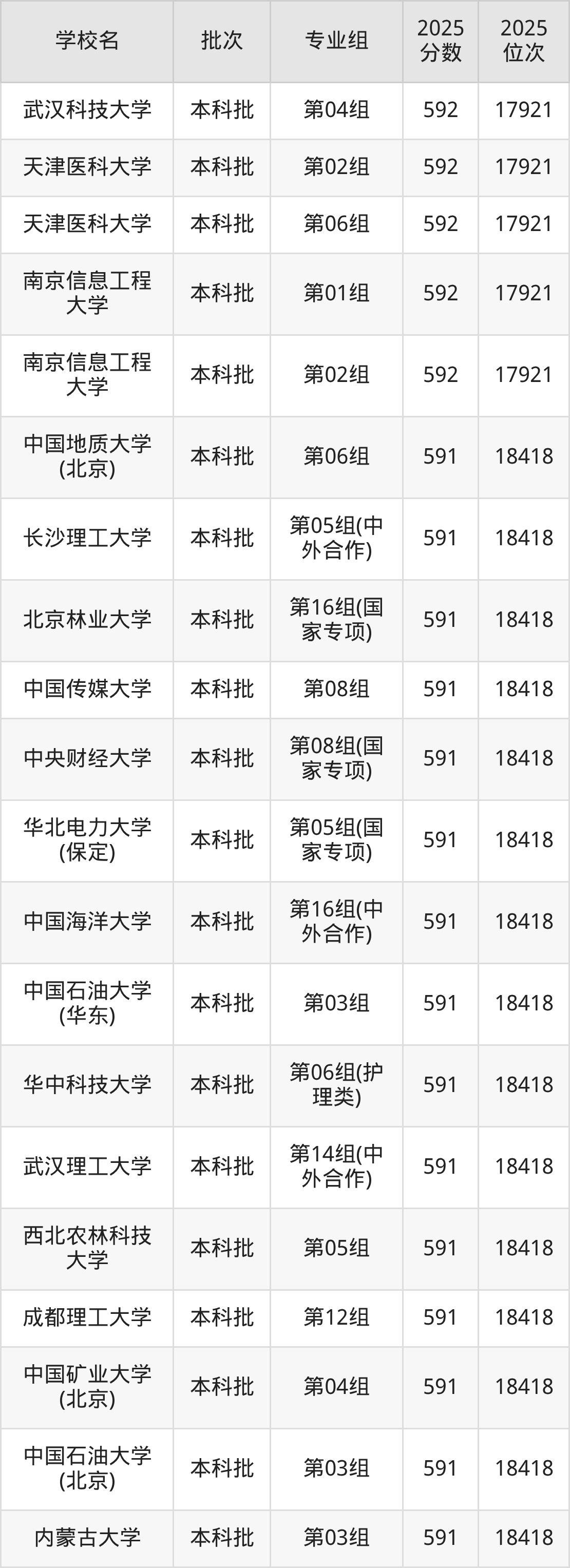 2025年湖北高考物理类592分(17447名~17921名)能上的大学有中央民族大学第09组(中外合作)、华北电力大学第03组、大连海事大学第06组、江南大学第08组等。