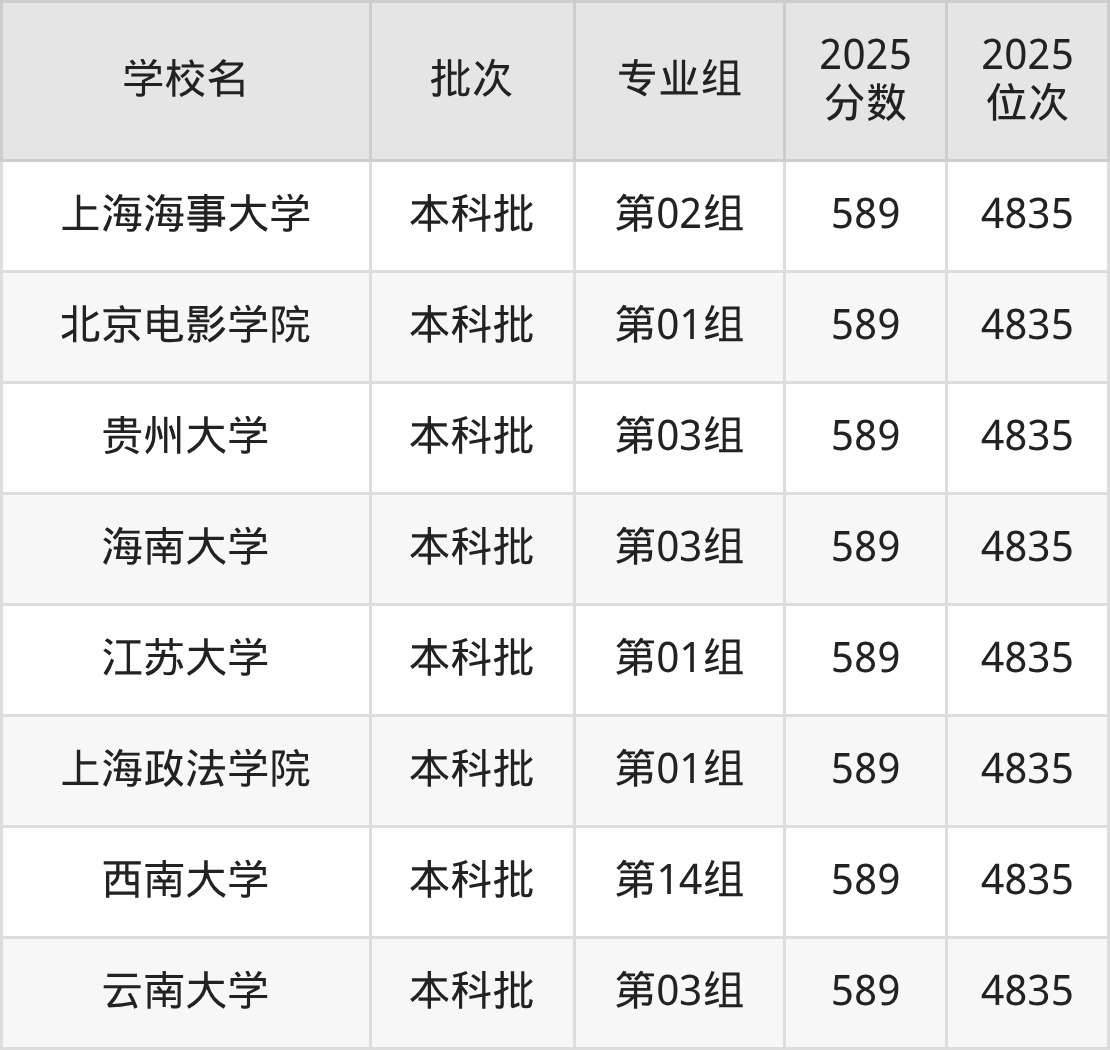 这些都是2026年高考历史类4223名~4379名考生可以报考的大学,更多学校名单如下表所示: