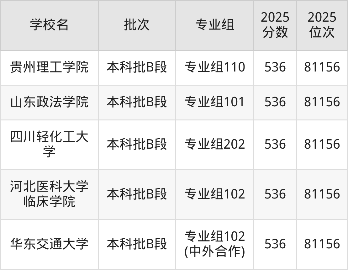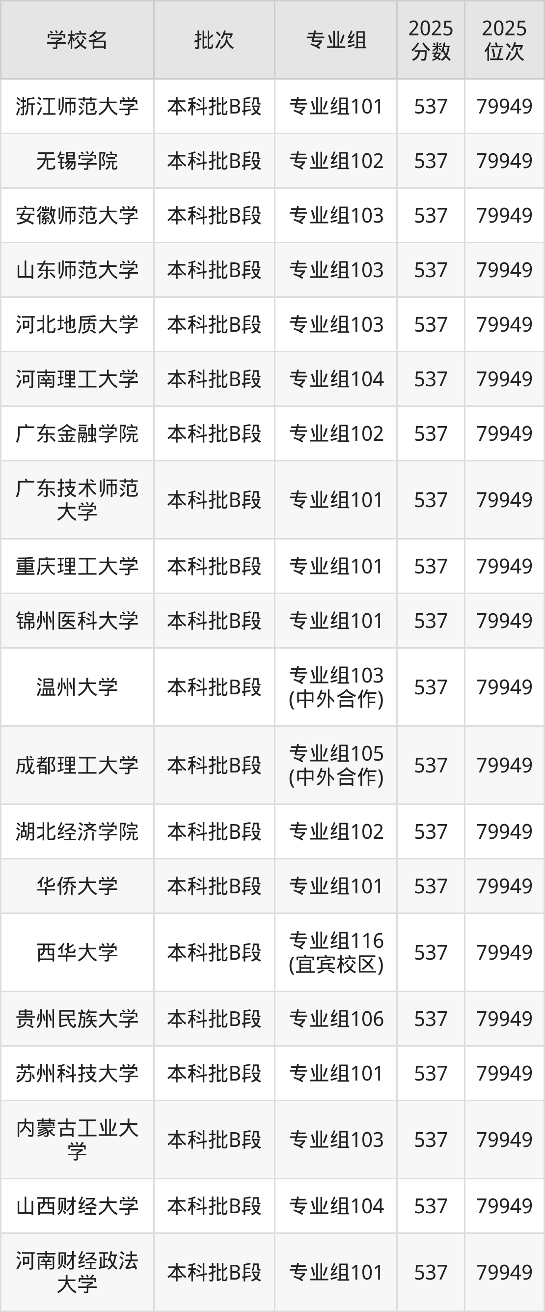 这些都是2026年高考物理类79950名~81156名考生可以报考的大学,更多学校名单如下表所示: