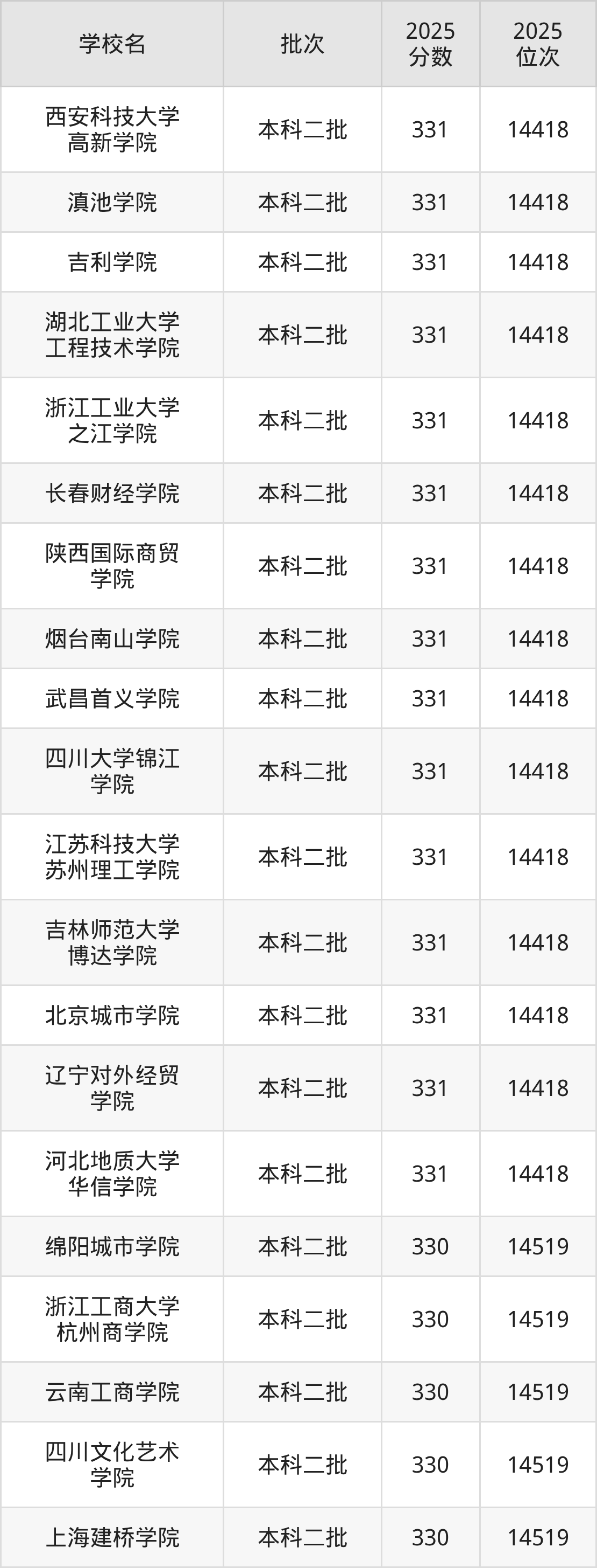 这些都是2026年高考文科14840名~14935名考生可以报考的大学,更多学校名单如下表所示: