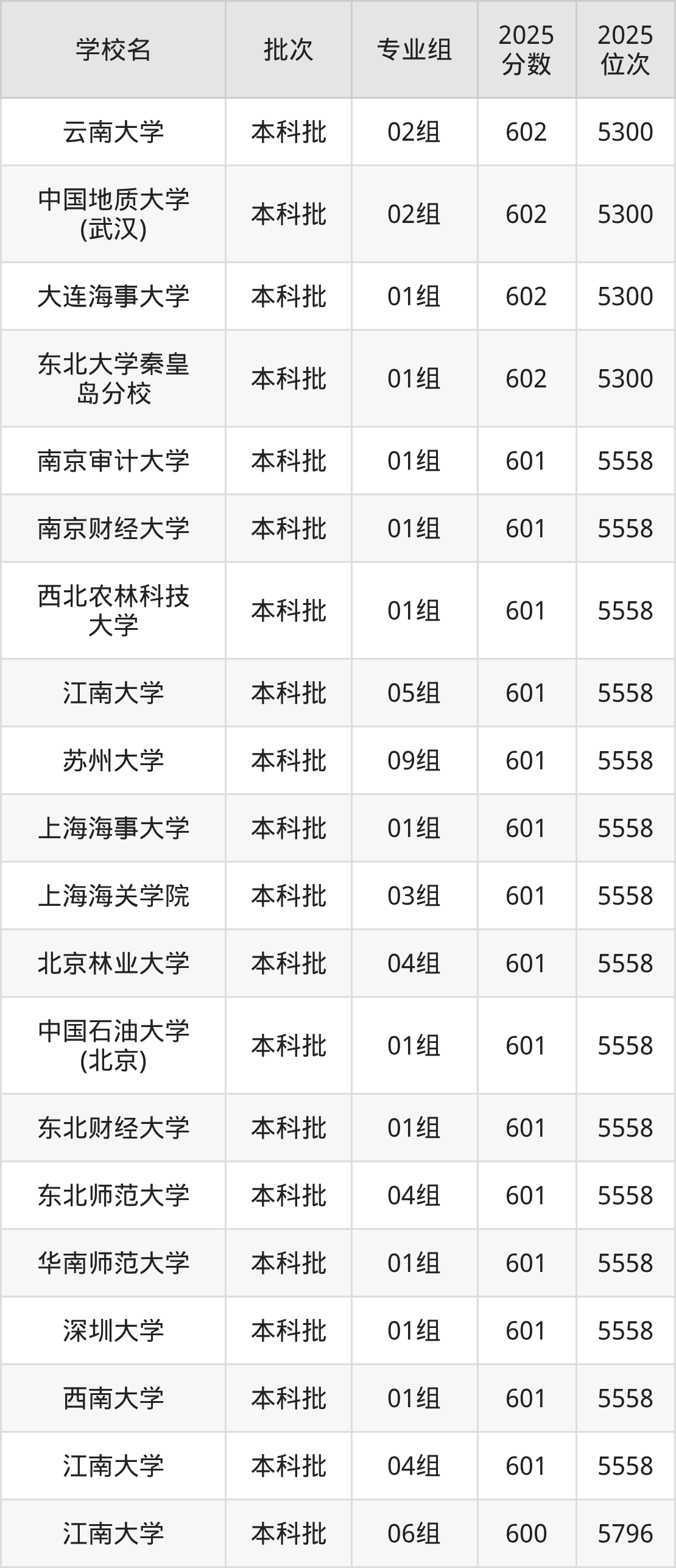这些都是2026年高考历史类5797名~6031名考生可以报考的大学,更多学校名单如下表所示: