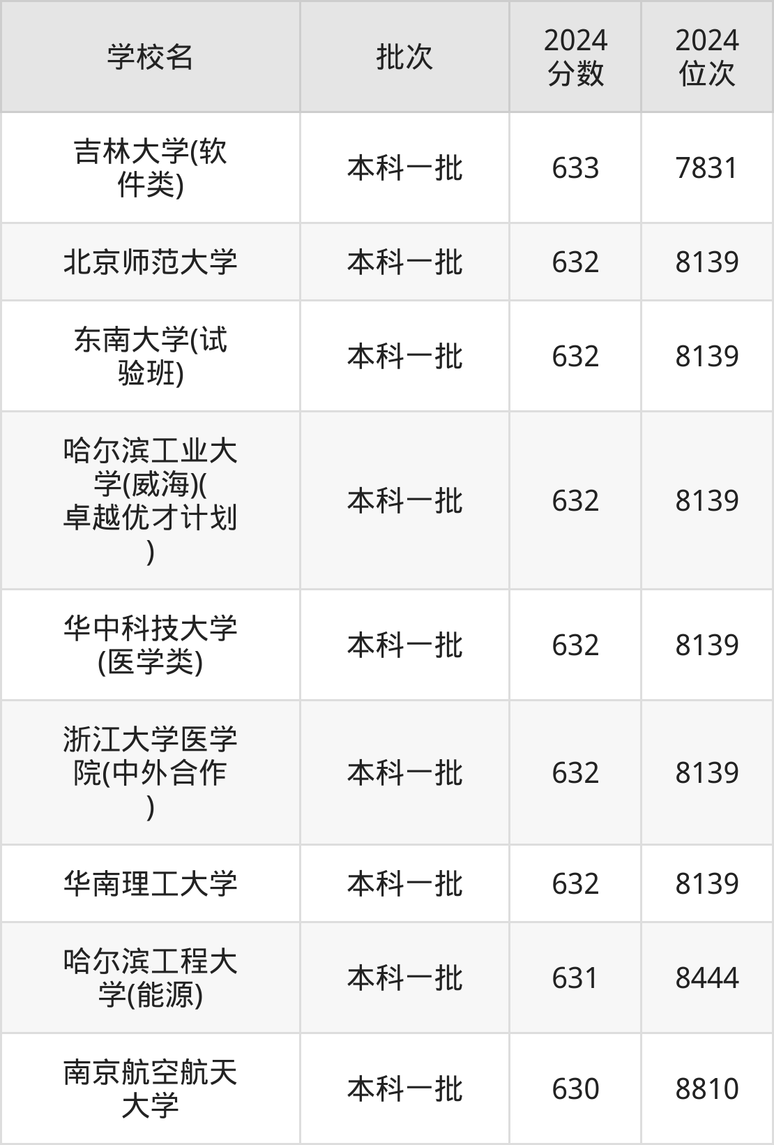 这些都是2025年高考理科8140名~8444名考生可以报考的大学,更多学校名单如下表所示: