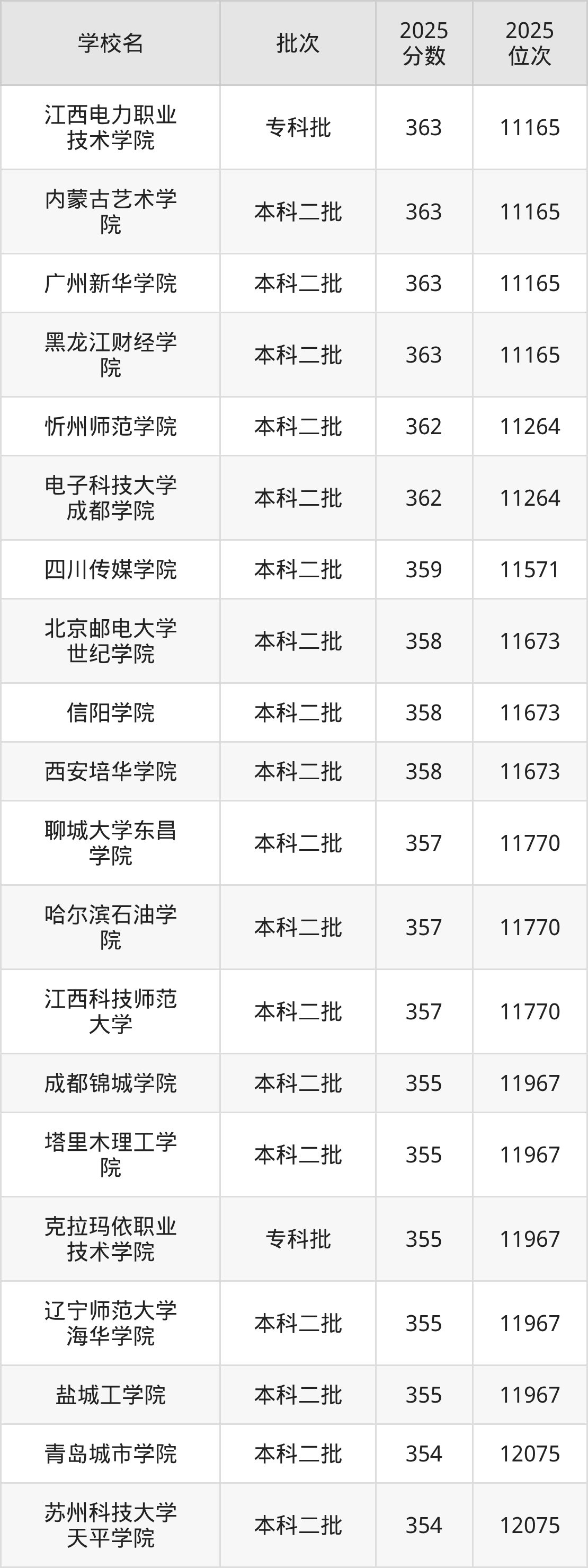 2025年新疆高考文科358分(11572名~11673名)能上的大学有西安培华学院、信阳学院、北京邮电大学世纪学院。