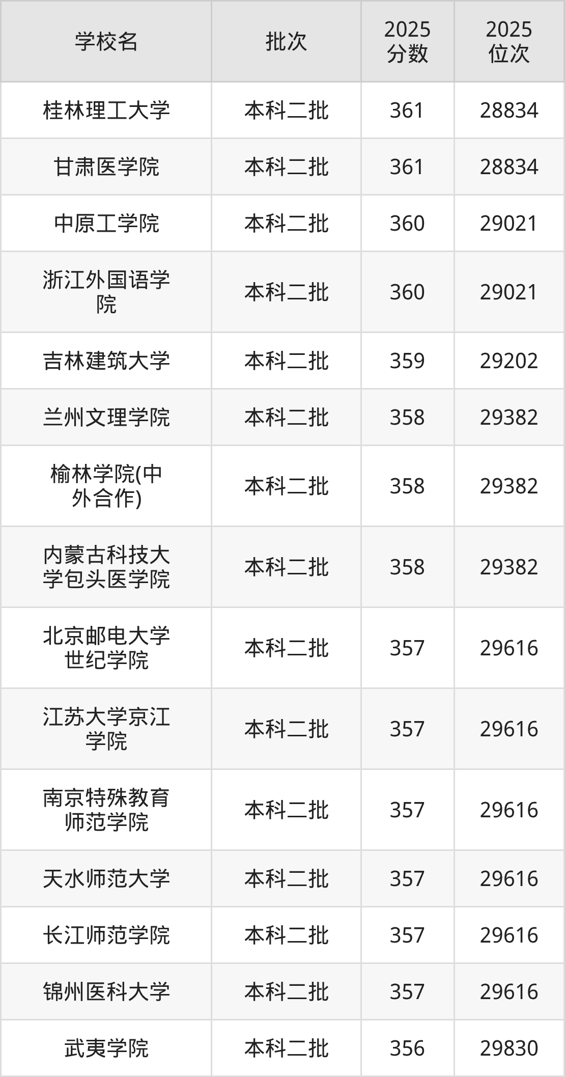 2025年新疆高考理科358分(29203名~29382名)能上的大学有兰州文理学院、内蒙古科技大学包头医学院、榆林学院(中外合作)。