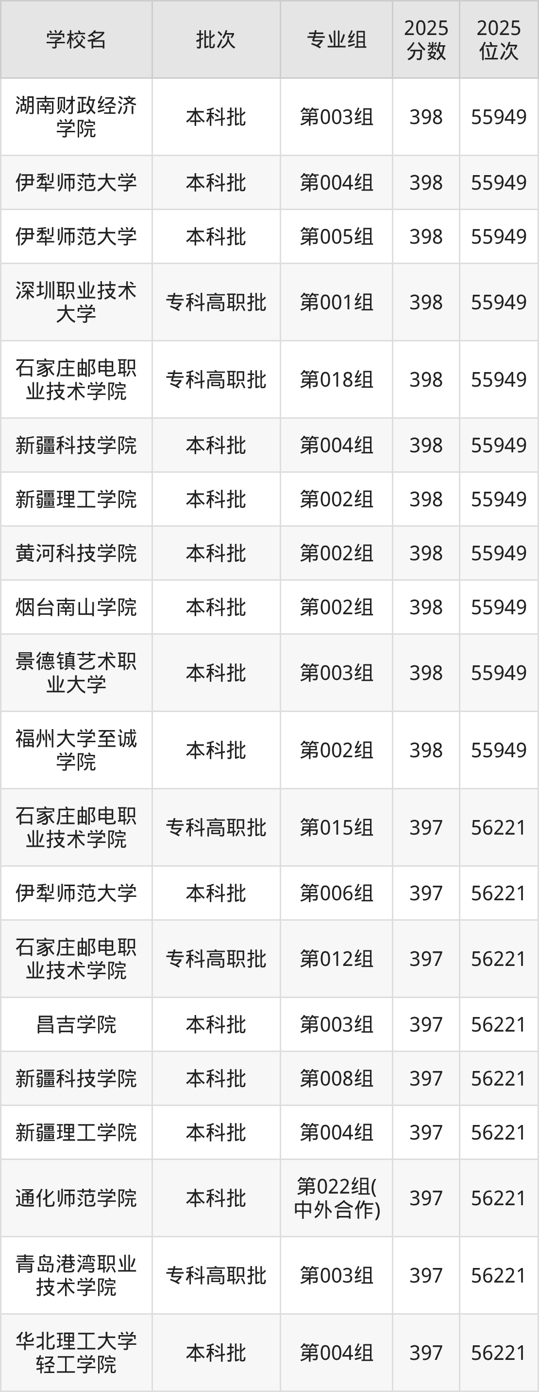 这些都是2026年高考物理类56222名~56505名考生可以报考的大学,更多学校名单如下表所示: