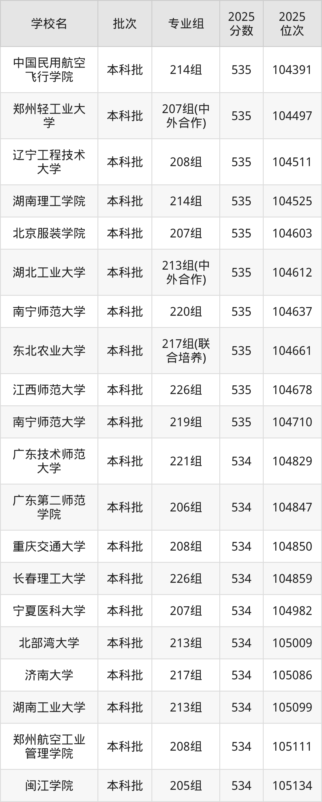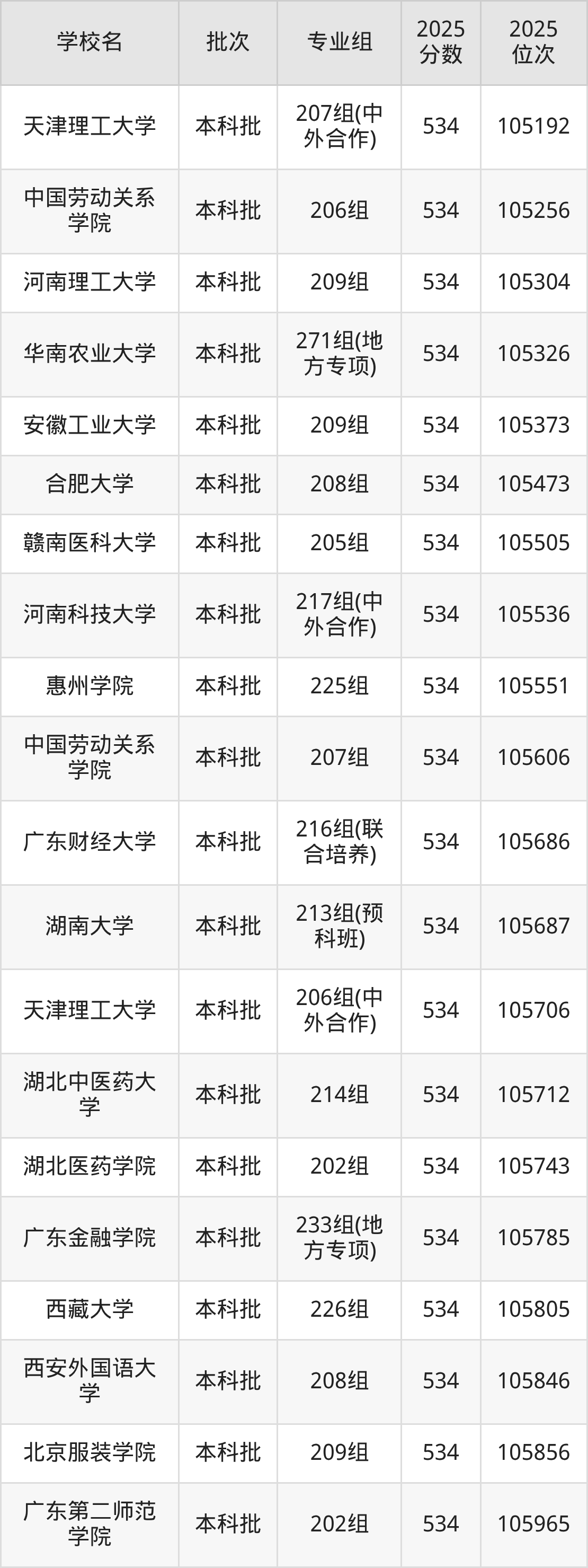 2025年广东高考物理类534分(104756名~106293名)能上的大学有北京服装学院209组、天津科技大学211组(中外合作)、天津理工大学206组(中外合作)、天津理工大学207组(中外合作)等。