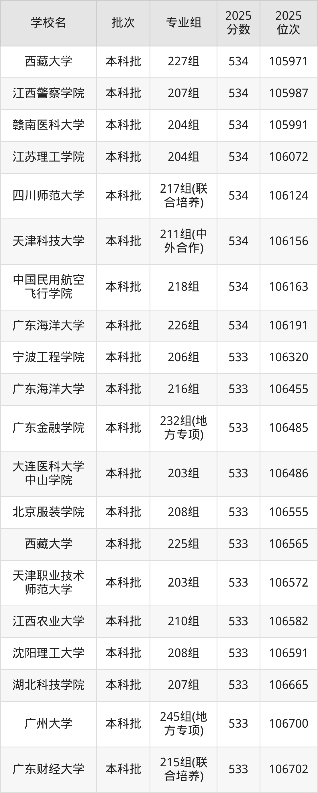 二、广东534分位次排名能上的大学