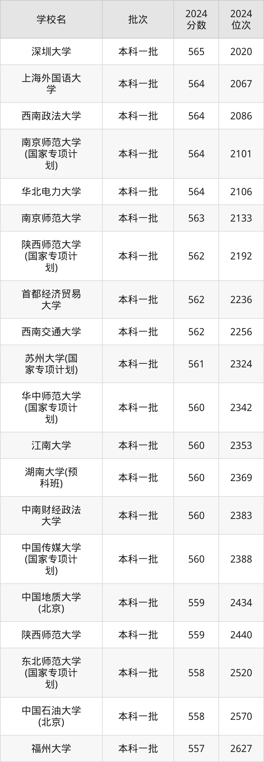 2024年陕西高考文科558分(2501名~2578名)能上的大学有中国石油大学(北京)、东北师范大学(国家专项计划)。