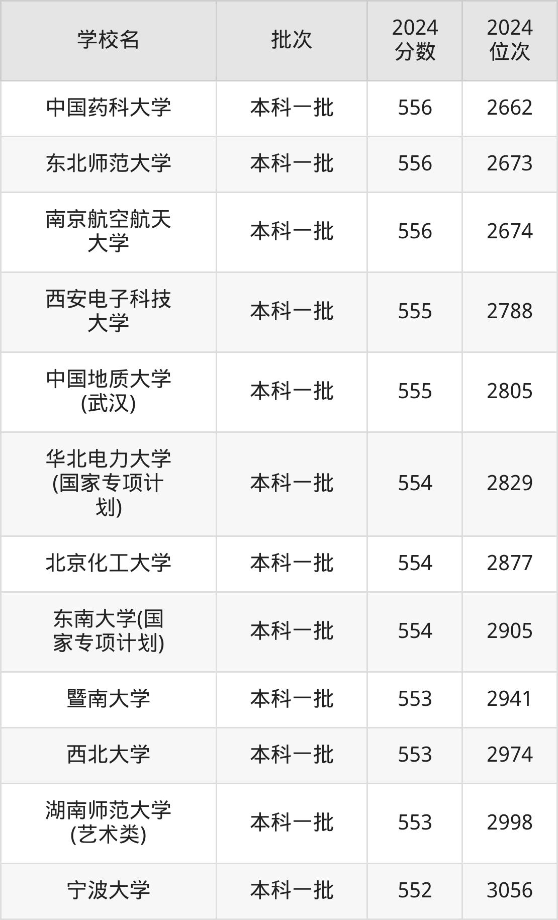 由于高考录取分数线历年波动较大,因此本文以该分数对应的位次排名为大家整理能上的大学名单。
