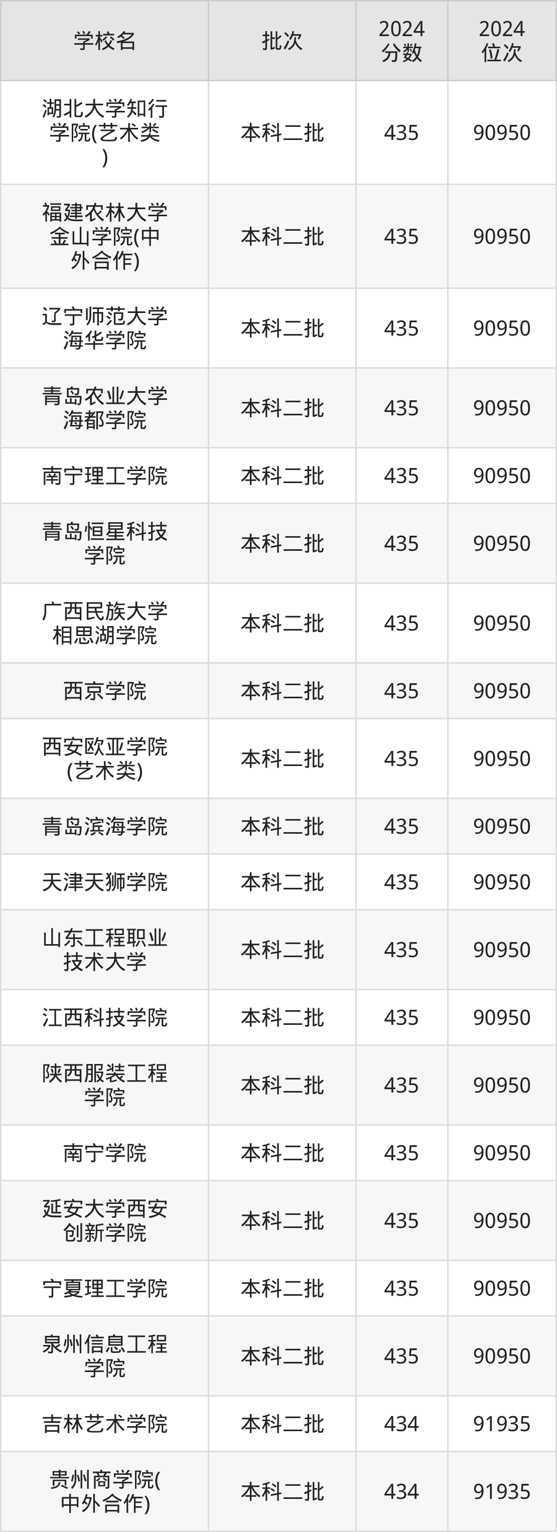 这些都是2025年高考文科90951名~91935名考生可以报考的大学,更多学校名单如下表所示: